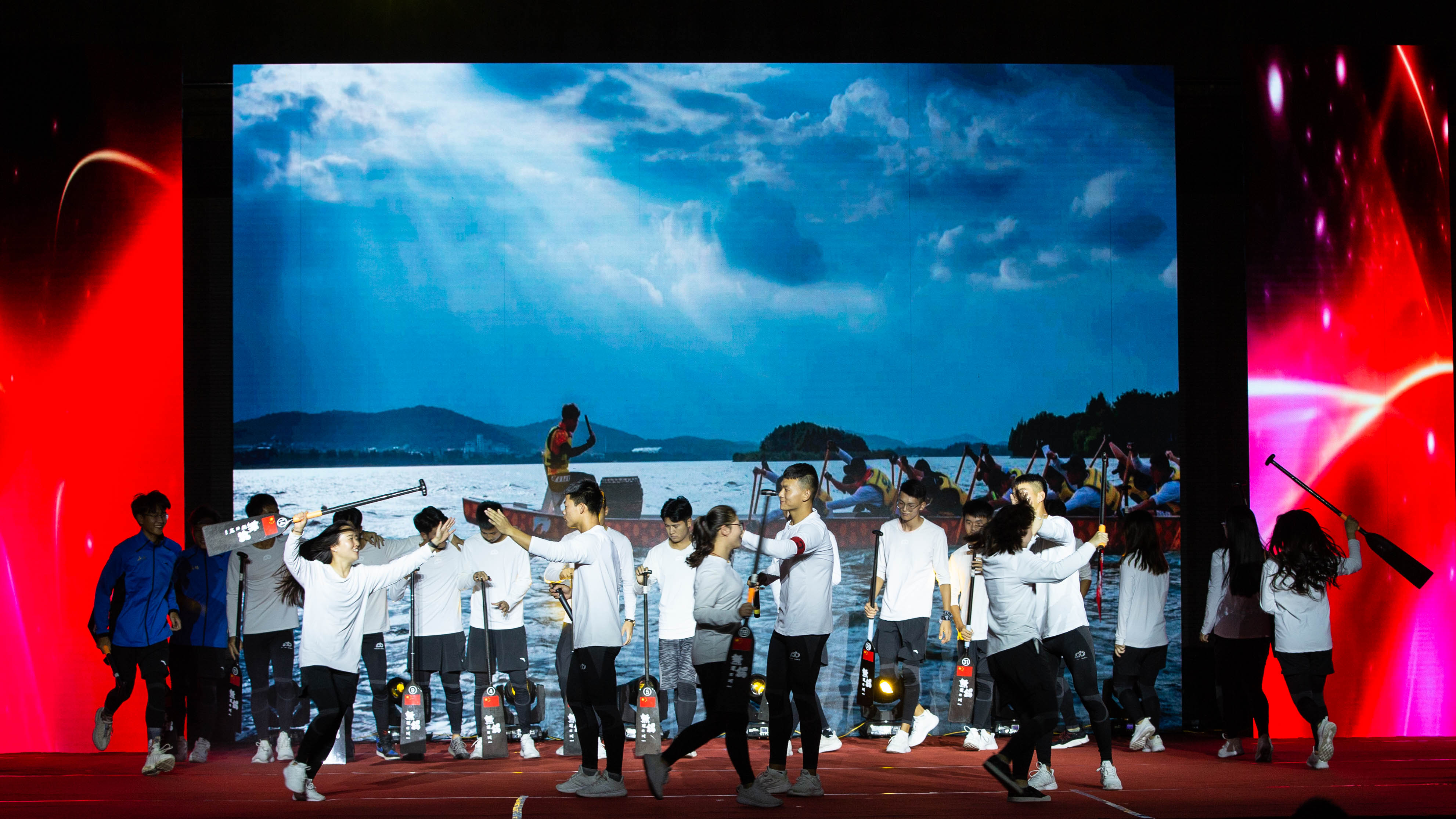 菁菁校园,激情洋溢。“望着天空,一路向前,双手紧握着信念,梦想不遥远”,由我院龙舟队员们带来的《光辉岁月》为青春发声,鼓励新生们坚定信念,追逐梦想。朗诵《因你而精彩》节奏欢快,激励奋进,台下的新生们备受感染,纷纷举起双手随着旋律摇摆,打造出一片“星海”。