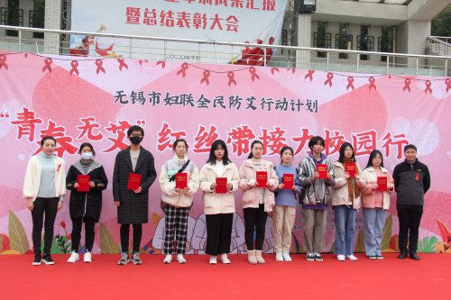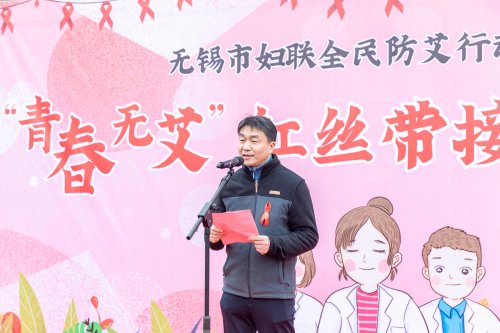 党委副书记俞力元出席并讲话 红丝带接力校园行接力 青春无艾你我有爱 12月2日,“青春无艾”红丝带接力校园行活动在我校北校区操场举行。无锡市妇联副主席朱秀娟、无锡市疾病预防控制中心主任王旭雯、惠山区妇联主席戴芸、惠山区疾病预防控制中心科长华中月、万家惠家庭发展服务中心负责人吴晓云、市妇联组织部、权益部、家儿部负责人、我校党委副书记俞力元、贸易金融学院院长市妇联执委夏莹、党委学生工作部副部长祝玥、贸金党总支副书记邢丹等共同参加开幕式。开幕式上,俞力元、朱秀娟分别致辞,充分肯定了此次活动,更强调了抗艾防艾的重要性,并为知识竞赛、原创作品获奖的同学进行颁奖。典礼结束后,与会领导共同开启全校防艾接力跑,为9个学院代表队伍系上充满希望和支持的红丝带。随后,各代表队五人一组,作为红丝带的信使,像星星之火一样,向全校师生传递红丝带的力量,共同护卫我们的青春健康。
