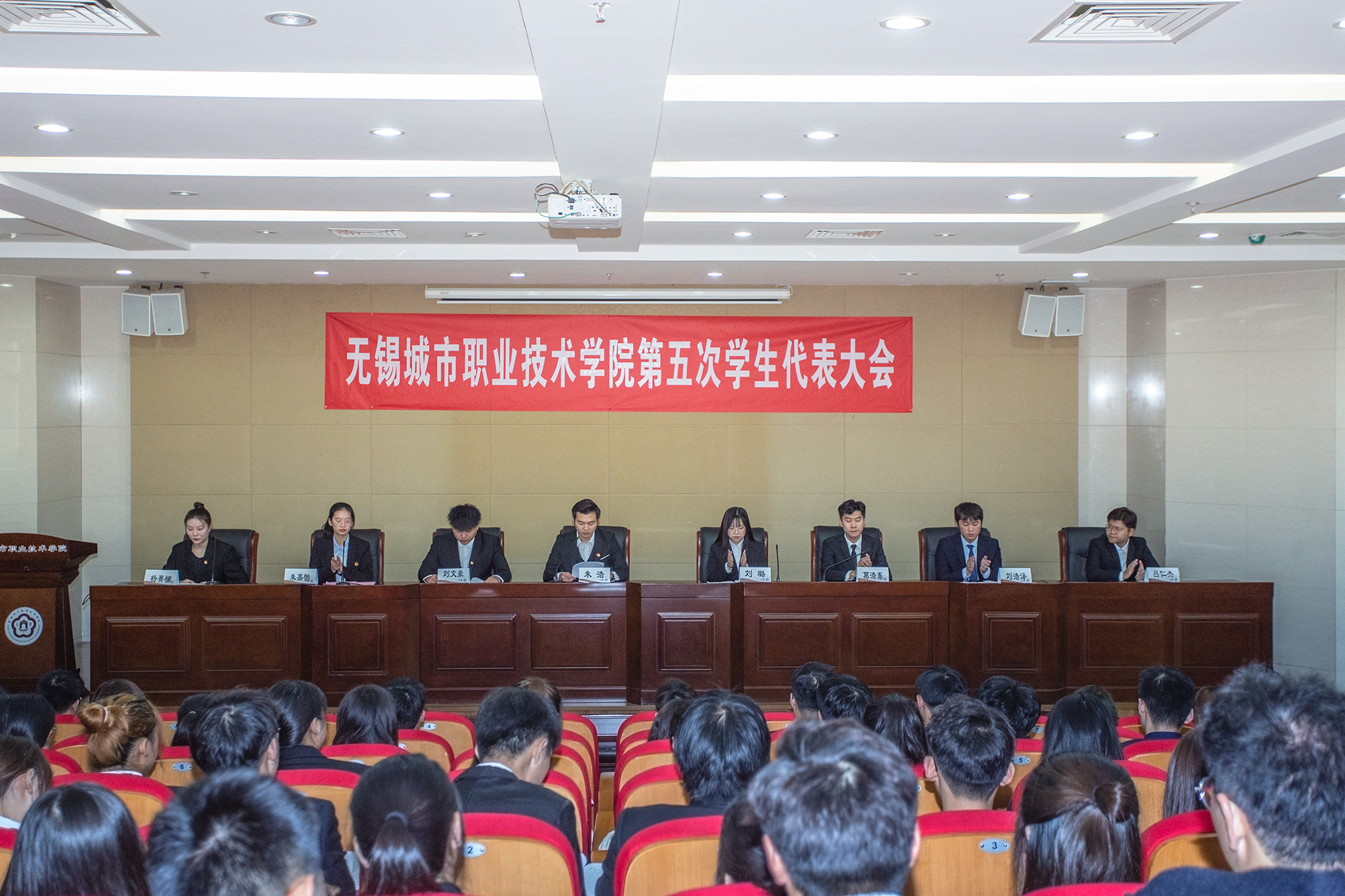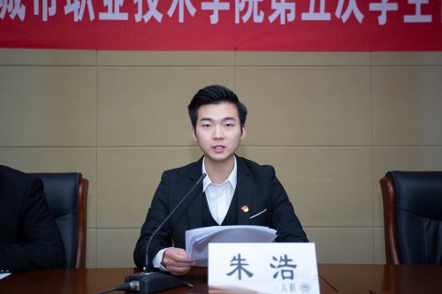 正式会议上,全体代表听取和审议了第四届学生会主席团执行主席朱浩所作的工作报告,并依次审议通过《无锡城市职业技术学院第五次学生代表大会代表资格审查报告(草案)》、《无锡城市职业技术学院第五次学生代表大会提案工作报告(草案)》,通过了新修订的《无锡城市职业技术学院学生会章程(修订案)》。最后,全体代表选举产生了第五届学生会主席团成员。