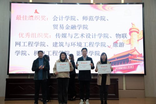 11月25日,“决胜小康、阅读追梦”第十一届读书节闭幕式在图书信息中心小报告厅举行。党委副书记俞力元,副校长王远东出席活动。党委学生工作部、图书馆、团委负责人,各二级学院党总支书记、分团委书记以及获奖师生代表参加了活动。闭幕式由党委学生工作部副部长祝玥主持。 会上,俞力元宣读了学校对本届读书节系列活动获奖项目和集体的表彰决定,并为读书节最佳组织奖和优秀组织奖的获奖集体颁奖。