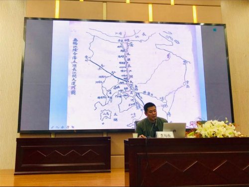 颁奖现场 闭幕式结束后,青年历史学者、央视法律讲堂主讲人、我校旅游学院副教授袁灿兴博士作了题为《运河与无锡近代城市兴盛》的文化专题讲座。他以翔实的史料,结合他即将出版的新专著的研究内容,以风趣的语言讲述了无锡近代工商业的辉煌历史。悠悠运河水,凝聚了无锡三千年风风雨雨的历史,孕育了古朴醇厚的民风民俗。精彩的讲座赢得了现场师生的热烈掌声。(文:黄丽洁;图:黄丽洁、陈鹏;审核:杨帆) 袁灿兴博士作题为《运河与无锡近代城市兴盛》的专题讲座 |