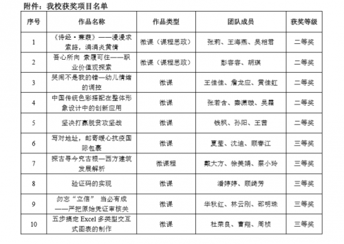 此次微课比赛成绩的取得,展示了我校近几年课程教学改革和教学信息化建设的成果,体现了我校教育教学水平的不断提高。(文:束瑜;审核:唐德淼)