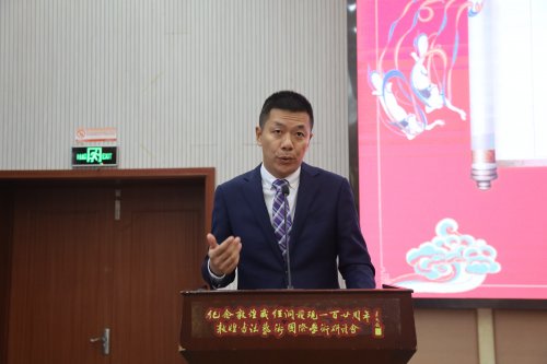 开幕式现场 开幕仪式 中国书法家协会副主席、江苏省书法家协会主席孙晓云,中国书法家协会副主席翟万益,国际书法家协会首席主席刘正成,中国书法杂志社社长、主编朱培尔,无锡市人大常委会副主任吴峰枫,无锡市政协副主席金元兴,敦煌市委常委、宣传部部长马慧君,无锡市教育工委书记、无锡市教育局局长唐加俊,我校党委书记应可福,党委副书记、校长张志祥,副校长吴雪纯以及专家学者书法家楚默、张德芳、赵际芳、于明诠、黄正明、常汉平、王晓光、袁灿兴、魏明扬、顾琴、姚志薇、孙璘、王小宇、吴勇、张平生、俞建良、唐超良、郁枫、李春泉、蔡树农、张波、孙大权等百余人出席大会,无锡市文联主席卢敏主持会议开幕式。 作为此次研讨会的主办方代表,应可福代表学校致欢迎词,他介绍了我校的办学历史和成就,充分肯定了举办本研讨会的必要性和重要意义,对传承和弘扬书法艺术寄予了殷切期望。马慧君在致词中表示,希望敦煌、无锡两地今后以敦煌书法艺术研究为纽带,在各领域开展全方位的合作,促进双方共同发展。吴峰枫在致词中高度肯定我校在敦煌书法艺术研究上作出的探索与努力,希望通过本次研讨会,扎实推动敦煌书法艺术在保护中传承、在传承中创新、在创新中发展。孙晓云发表讲话,她希望各位专家能够广开思路,畅所欲言,为江苏开展敦煌书法艺术研究积极建言献策,同时也希望“一带一路”沿线各书法艺术团体和研究机构能够坚定文化自信,担当文化使命,继续深化交流合作,为推动中国书法艺术的繁荣,建设社会主义文化强国作出应有的贡献。开幕式上,与会领导为敦煌书法学研究论文获奖者代表颁发了荣誉证书,我校袁灿兴博士作为获奖论文代表发言。 我校党委书记应可福教授致辞 敦煌市委常委、宣传部部长马慧君致辞 无锡市人大常委会副主任吴峰枫致辞 中国书法家协会副主席孙晓云发表讲话 无锡市文联主席卢敏主持会议 我校党委副书记、校长张志祥教授,无锡职教园管委会党工委副书记尤瑜峰为论文获奖者代表颁发荣誉证书 山东省书协副主席、山东艺术学院于明诠教授,江苏省书协副主席、南京艺术大学文化艺术教育中心主任黄正明教授为论文获奖者代表颁发荣誉证书 获奖论文代表袁灿兴博士发言 开幕式后,原甘肃简牍博物馆馆长张德芳,中国书协学术委员、上海书画出版社《书法研究》杂志副编审王晓光分别作题为《汉简中的书法世界》、《近年西北新出土简牍》的专题报告。下午,与会专家围绕简牍、石刻、写经上的书法研究论文进行学术研讨,大家各抒己见,气氛热烈。藏经洞发现120年来,书法界对其五六万件写经书法只有一些零碎、分散的研究,既无专业的著作,亦少有深度的论文。2017年,无锡城市职业技术学院、无锡市文联积极响应国家“一带一路”倡议,组织有关专家对敦煌纸上、石上、简牍上的书法作认真深入的研究,撰写了五卷本的《敦煌书法史》丛书。2019年初,研讨会学术论文征集评选活动正式启动,得到了书法理论界的热烈响应和大力支持,共收到百余篇优秀论文作品。2019年6月,在我校举行了论文评审会,遴选出20余篇优秀论文结集成册出版,具有较高学术价值。 原甘肃简牍博物馆馆长张德芳作题为《汉简中的书法世界》的专题报告 中国书协学术委员、上海书画出版社《书法研究》杂志副编审王晓光作题为《近年西北新出土简牍》的专题报告