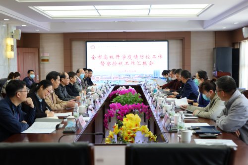 4月16日上午,全市高校疫情防控督查验收组组长冯益民一行9人对我校开学疫情防控工作进行现场督查验收。督察组一行听取汇报、查看台账并进行实地验收。 学校在行政楼308召开汇报会,校疫情防控工作领导小组全体成员参加会议,会议由党委书记、校疫情防控工作领导小组组长应可福主持。 会议现场 会上,校疫情防控工作领导小组成员围绕组织领导、工作方案、信息摸排、防控措施、应急预案、物资保障、隔离场所、防疫制度、舆论引导等方面向督查验收组汇报了我校防疫及开学准备工作情况。近期,学校严格按照省、市统一部署,压实责任,抓细抓实,不留盲点,系统有效抓好疫情防控,全面细致做好开学复课准备工作。 汇报会后,督查组分组现场查阅了我校疫情防控期间相关台账,实地查看了学生食堂、宿舍、浴室、教学楼、校医室、防疫物资储存仓库等重点区域的疫情防控准备情况。 现场督查