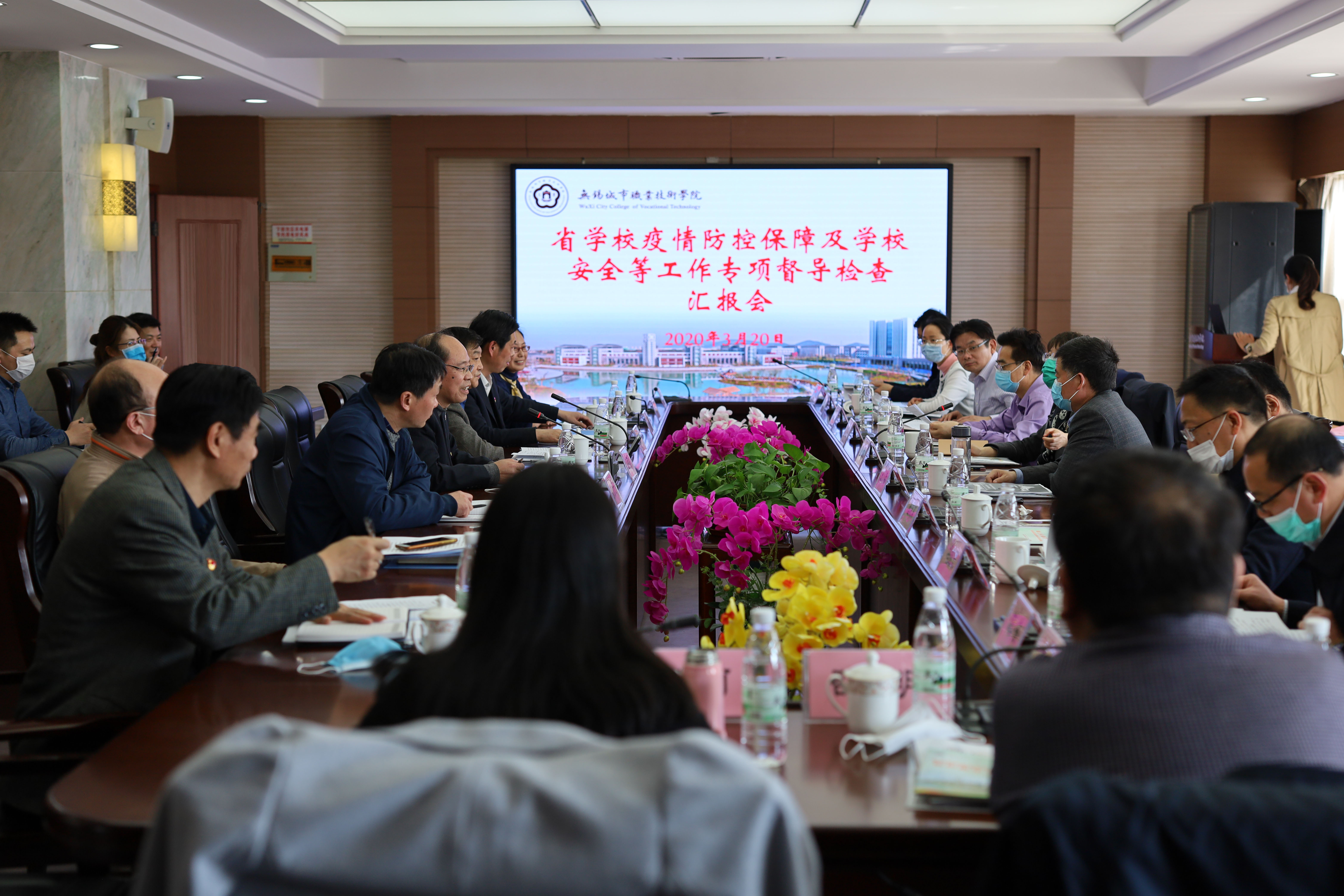 3月20日下午,省教育厅副厅长曹玉梅、省教育厅政策法规处处长王兵、省教育厅职业教育处处长刘克勇、省教育考试院高校招生处副处长崔晓东、无锡市疾控中心公共卫生部主任周伟杰、无锡市卫生监督所学校卫生监督处副主任汤韵一行6人来我校进行疫情防控保障及学校安全等工作专项督导检查。市委教育工委副书记、市教育局副局长符菊成,市政府教育督导室副主任冯益民,市教育局高等教育与职业教育处处长高群,市教育局体育卫生与艺术教育处处长华莉莉,市教育局安全保卫处处长邵小明陪同检查。