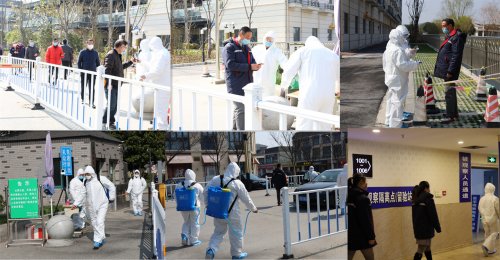 演练以工作人员入校开始,大家保持一米以上间隔逐个通过自动测温仪,同时保安身着防护服验查“锡康码”。模拟演练中的一名工作人员在经过自动测温仪时,测温仪报警,提示该人体温异常,保安随即将体温异常人员拦下,再次用手持测温枪检测体温,确认其体温异常后立刻上报,同时将其引导至临时隔离区域,控制密切接触人员并疏散周围人群。后勤管理处接到通报后即刻安排校医及消杀人员赶致校门,经校医多次体温复查均超过37.3摄氏度,且14天内与来自武汉的人员有接触史。后管处领导即刻作出送诊决定,同时向学校疫情防控工作领导小组汇报,经请示后联系惠山区疾控中心汇报疑似疫情信息。送诊车辆随后到达,体温异常人员由校医陪同送诊,全车人员均做好最高级别防护。随后密切接触者在校医的陪同下间隔有序地到达临时隔离观察点,以“一人一屋”的标准开始隔离。消杀人员全程对体温异常者及其接触人员经过的区域和工作人员体表进行消杀。最后学校疫情防控工作领导小组向市教育局相关部门报送疑似疫情信息,并视诊断结果确定是否启动疫情防控一级预案。