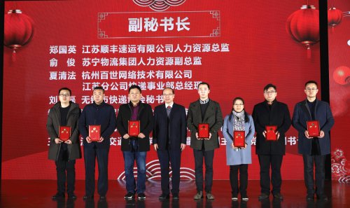 江苏省邮政行业职业教育集团揭牌仪式 会议审议通过了集团章程,选举出集团顾问、理事长、副理事长、常务理事、秘书长、副秘书长。会议推选全国邮政职业教育教学指导委员会秘书长陈兴东、江苏省快递协会会长孙安宁、无锡市快递协会会长吴建选、南京邮电大学现代邮政学院院长孙知信为集团顾问。校党委书记应可福当选为集团理事长,副校长吴雪纯当选为集团秘书长。与会领导为集团顾问、理事长、副理事长、常务理事、秘书长、副秘书长授牌并颁发聘书。