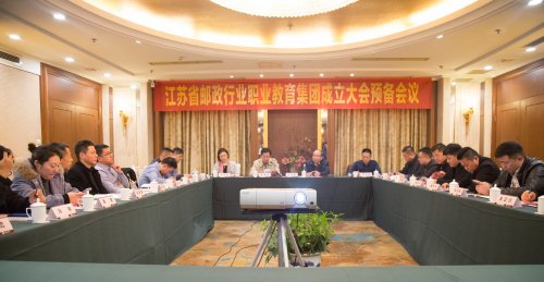 江苏省邮政行业职业教育集团成立大会预备会现场 11日,江苏省邮政行业职业教育集团成立大会暨江苏省邮政行业人才培养基地授牌仪式在我校大报告厅举行。江苏省教育厅职业教育处副处长徐庆,江苏省邮政管理局人事处处长陶仁才,江苏省快递协会会长孙安宁,无锡市快递协会会长吴建选,无锡市教育局副局长吴洵如,无锡市邮政管理局党组书记、局长陈东,全国邮政职业教育教学指导委员会秘书长陈兴东,校党委书记应可福,党委副书记、校长张志祥出席。江苏省邮政行业职业教育集团(筹)成员单位的领导以及我校相关职能部门、二级学院负责同志和师生代表参加会议。大会由副校长吴雪纯主持。