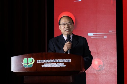 江苏省邮政管理局人事处处长陶仁才为江苏省邮政行业人才培养基地授牌 全国邮政职业教育教学指导委员会秘书长陈兴东致辞。他指出,江苏省邮政职业教育集团的建立,是邮政职业教育贯彻落实国家职教改革的重大举措,作为全国范围内首个邮政行业职教集团,将有力推动产教融合,全面加强校企深度合作,加快现代邮政职业教育发展步伐。邮政行指委将全力支持江苏省邮政行业职教集团和邮政行业人才培养基地的建设和发展,服务集团和基地的各项工作目标,共同为全国邮政职业教育向更高质量发展而努力奋斗。