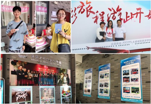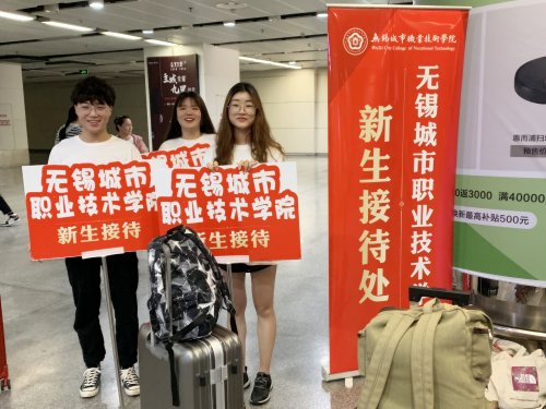 2019级新生满怀憧憬走进校园 随后,校领导一行来到学生宿舍、食堂,与新生和家长亲切交谈,鼓励同学们尽快适应校园生活,好好学习。 志愿者周到服务 秩序井然 为帮助新生更快地完成入学报到,适应大学生活,学校今年在迎新工作中继续安排优秀志愿者实施“精准”服务。9月8日早晨6时许,30名学生志愿者已奔赴无锡中央车站、无锡东站等接站点迎接新生。在各接站点,带队老师和志愿者们耐心回答新生和家长们的询问,引导新生乘坐到达学校的车辆。校园内,保卫处以及学生志愿者积极做好新生、家长和车辆引导工作,保证校园治安安全和交通秩序;在报到现场,新生登记、注册、缴费等环节有条不紊,老师和学生志愿者用最灿烂的笑脸迎接新生,耐心解答新生和家长们的问题。 志愿者服务新生 志愿者服务新生 迎新点各具特色 亮点纷呈 各二级学院将各自独特的学院文化与迎新方式巧妙结合,让学生和家长在踏入校园之初就感受到了亲切的氛围。 在北校区,影视学院报到处的新生们正品尝着学院准备的大蛋糕,上面还有新生姓名牌标签,特别的迎新礼让新同学们“甜”到了心里,学院还为每位新生发放了入学纪念卡,帮助新生第一时间了解班主任信息,尽快融入大学生活。旅游学院的照片墙吸引往来新生驻足合影,定格来到城院的第一刻;现场的“大飞机”夺人眼球,将带领新生们开启精彩“旅”程。传媒与艺术设计学院的巨幅海报展示了充满活力的教学团队,学生优秀作品展示带领同学们走进创意的世界。物联网工程学院报到处,优秀毕业生郑雨婷的返校吸引了不少新生现场取经,优秀学姐为新生们树立了榜样,和新生们一同憧憬美好的未来。建筑与环境工程学院架设欢迎手印墙,2019级小萌新们将在此留下入校后的第一份印记。 在南校区,师范学院新生入学工作在学院的精心准备和合理规划下,工作效率高、秩序好,圆满完成各项报到工作。会计学院充分发挥专业优势,统计制作2019级新生“大数据”,让每一位新生对自己的同学有了直观的了解,书法社团的同学们在迎新现场用笔墨为新生们送祝福,并向新生送上“锦囊妙计”,深受新生欢迎。贸易金融学院师生充满朝气与活力的橙色院服成为现场一道亮丽的风景线,带给新生别样的温暖,通过展板展示了学院的方方面面,多彩的大学生活让新生们充满期许。 各二级学院报到处 各二级学院报到处 人性化流程设计 高效贴心 今年的迎新工作中,学校继续推行多项人性化举措。校园内,欢迎标语、新生报到处、缴费处、车辆引导、宿舍区引导等标志摆放有序,引导师生便捷到达指定地点。学校精心编制的学生手册在第一时间到达新生手中,让每个新生能尽快地了解无锡、了解学校。各二级学院在报到处显著的位置张贴了新生辅导员、班主任风采展板,让新生在第一时间和班主任、辅导员面对面。学校专门设置学生资助服务站,为家庭经济困难新生办理“绿色通道”手续。 值得一提的是,新生缴费处是往年迎新工作中最易造成人员积压的地点,在今年的缴费点却见不到熙熙攘攘的人群。多数新生通过微信提前完成了学费缴纳,学校在缴费现场还开通了银行卡、微信、支付宝缴费渠道,让新生缴费再也不用大排长龙。