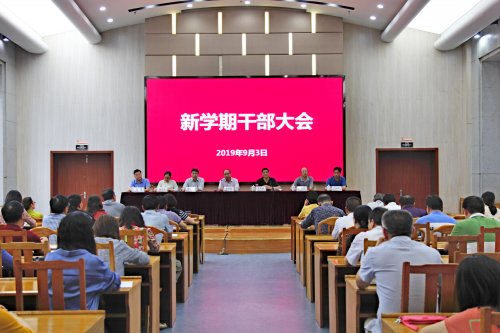 9月3日下午,学校在图文信息中心小报告厅召开新学期干部大会,回顾总结上半年学校各项工作的推进情况和取得成效,安排部署下半年的重点工作任务。校党委书记应可福,党委副书记、校长张志祥,党委副书记俞力元,副校长王远东、梅亚萍,纪委书记刘永平,党委委员、组织部部长王建出席会议,全体副科级以上干部参会。会议由党委副书记俞力元主持。 会议现场 会上,应可福传达了全省高校领导干部暑假学习培训班相关精神,提出了新学期学校工作总体要求。他要求全校干部,一要勤于学习。要以“不忘初心、牢记使命”主题教育为重要契机,加强政治理论学习,读原著、学原文、悟原理,强读强记、常抓常新,把自己摆进去、把工作摆进去,做到学、思、用贯通,知信行统一。同时,还要加强业务知识、管理知识,特别是新知识的学习。二要精于思考。对标同行先进,发现自身问题,把握改革方向,提高工作绩效。三要勇于创新。要在管理、服务中树立科学思维方式、强化创新思维,不断解放思想、深入研究、集思广益、推陈出新。四要善于落实。要从小事做起,端正工作态度,提升工作能力,强化奉献担当。真抓实干、取得实效。五要清正廉洁。慎独慎微,廉洁自律,树立领导干部的良好形象,营造风清气正的校园政治生态。应可福强调,全体干部要以对党负责、对教育事业负责的态度,以更加饱满的热情、更加充足的干劲,勠力同心,接续奋斗,努力开创学校各项事业高质量发展新局面。 校党委书记应可福讲话 张志祥从党建思政、干部队伍、专业建设、教学科研、人才培养、招生就业、师资队伍、服务保障、校园文化等方面全面总结了学校2019年上半年各项工作。他指出,2019年上半年,学校各项工作“稳中求进,有新气象;改革创新,有新举措”,为圆满完成全年工作任务奠定了坚实基础。张志祥围绕“高质量发展”这一中心任务,从开展“不忘初心、牢记使命”主题教育、筹建无锡师范高等专科学校、开展干部聘任、召开第二届教代会职代会换届、召开首届全校教学工作会议、启动校园二次规划、实验实训室建设、场馆升级改造等方面部署了下半年重点工作。张志祥详细分析了学校高质量发展的各项指标体系,并强调,全体干部要牢固树立学习意识、大局意识、政治意识、发展意识、担当意识,开拓创新、善谋实干、攻坚克难,为推动学校各项事业高质量发展而努力奋斗,以实干实绩迎接新中国成立70周年。 党委副书记、校长张志祥讲话 党委副书记俞力元主持会议 会上,王建宣读干部任用决定。 党委委员、组织部部长王建宣读干部任用决定 与会同志认真听会 |