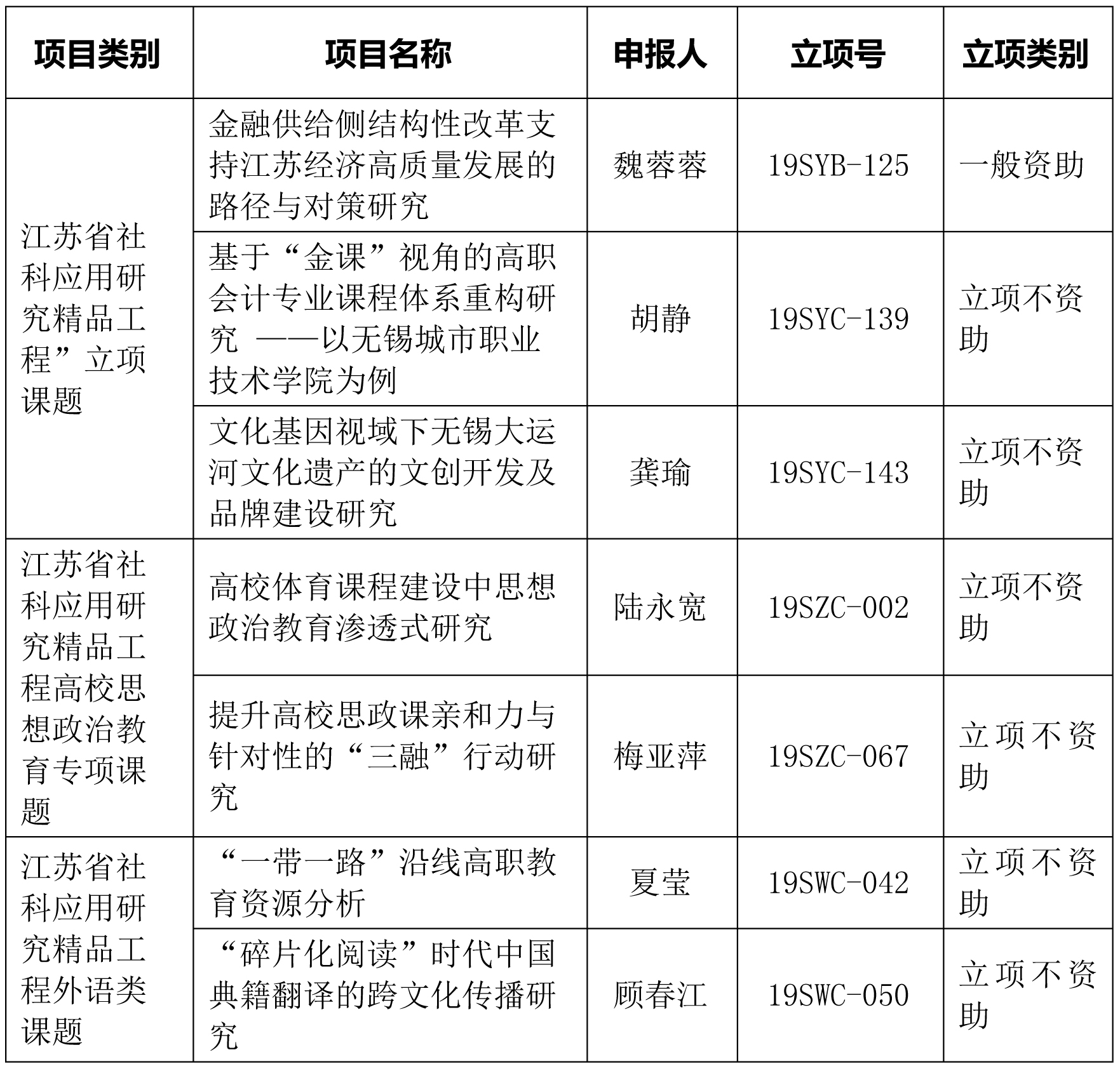 | 我校获3项2019年度“江苏省社科应用研究精品工程”课题和4项专项课题立项 | |||