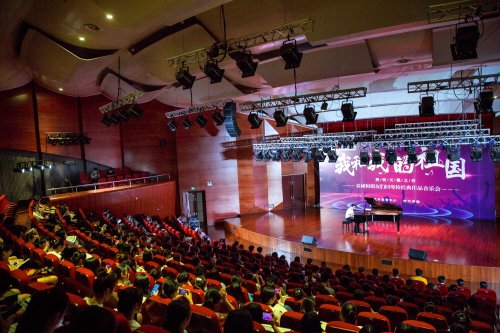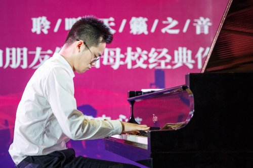 袁昶从我校毕业后留学比利时,目前在匈牙利巴托克音乐学院攻读艺术家研究生学位。今年5月份,袁昶在匈牙利看到母校拍摄的快闪《我和我的祖国》,萌发了回祖国母校举办音乐会,汇报学习成果的想法,便着手联系、积极准备。在音乐会上,袁昶从世界音乐发展的视角出发,带领2014级学前教育学生唐新雅共同演绎钢琴作品,演奏曲目从巴洛克时期跨越到近现代音乐时期,作品跨度400多年,包含了巴赫《平均律钢琴曲集》、斯卡拉蒂奏鸣曲、海顿奏鸣曲、李斯特梅菲斯特圆舞曲、肖邦圆舞曲、舒曼幻想曲、德彪西慢版圆舞曲、巴托克组曲到中国近现代钢琴作品《春舞》,袁昶用美妙的音色、完美的演奏成功演绎了整场音乐会,并为每首作品都作了解说,让听众在理解作品的前提下享受到音乐更深层的美。