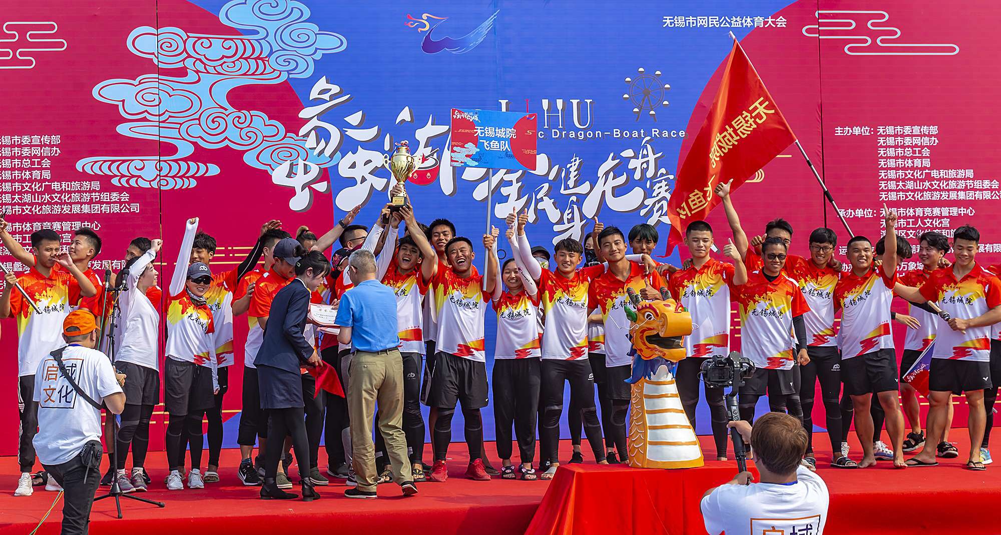 6月15日,一年一度的无锡蠡湖传统龙舟赛在无锡万象城水域隆重举行。来自省内外的32支队伍经过预赛、复赛和决赛三轮比赛,最终决出所有名次。我校飞鱼队最终获得本次赛事的冠军,另一支旗鱼队获得第四名。