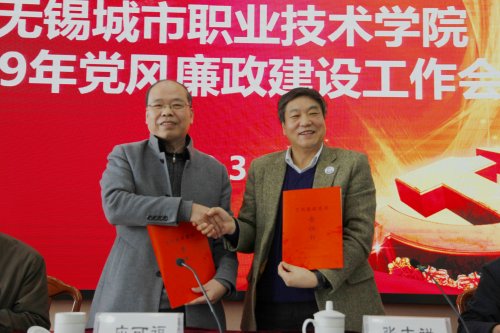 3月14日下午,我校召开2019年党风廉政建设工作会议。学校领导应可福、张志祥、俞力元、吴雪纯、王远东、梅亚萍、刘永平出席会议,全体副科级以上干部参会。会议由党委副书记、校长张志祥主持。 会上,与会人员集中观看了市纪委监委制作的警示教育片《“政治体检”验忠诚》。教育片以市委巡察过程中发现的问题作为素材,深入剖析了一件件发生在身边的案例,提醒与会者要时刻牢记党纪国法,把“廉政”两字常挂心中。 纪委书记刘永平传达了中央、省市纪委全会精神,并就做好2019年纪检监察工作,提出了六点要求:一是把政治建设放在首位,力戒形式主义、官僚主义;二是切实履行监督职责;三是巩固发展反腐败斗争压倒性胜利成果;四是持续整治群众身边腐败和作风问题;五是一体推进不敢腐、不能腐、不想腐的长效机制;六是从严从实加强纪检监察队伍建设。 党委书记应可福讲话。他强调,各级党组织和广大党员干部要透彻领悟习近平总书记在中央纪委三次全会上重要讲话精神,增强“四个意识”、坚定“四个自信”、做到“两个维护”,严明政治纪律和政治规矩,严于监督,守住底线。并从带头正确践行“两个维护”、带头认真执行民主集中制、带头压紧压实责任、带头落实请示报告制度、带头大力营造健康的工作关系五个方面对全体党员领导干部提出要求。 会上,应可福与校党委班子成员,校党委班子成员与分管二级学院、部门党政负责人分别签订党风廉政建设责任书,副科级以上干部签订干部廉政承诺书。并向副科级以上领导干部发放了市纪委监委编制的《廉政关爱书》及学校纪检监察室自编的《党风廉政建设履责记实手册》,提醒各位党员干部要牢记自身职责,强化责任担当,守住道德底线,切实增强自身拒腐防变的能力,始终保持共产党人清正廉洁的政治本色。 |
