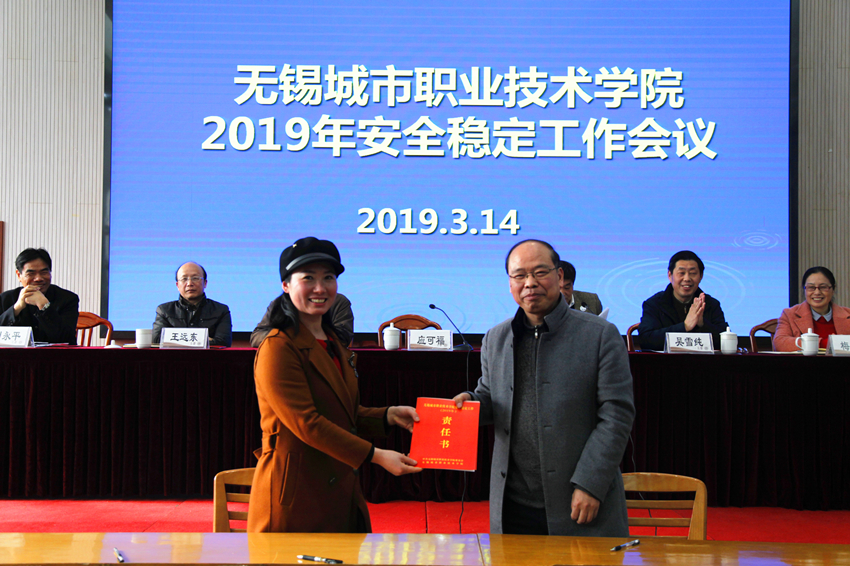 党委书记应可福分别与党委学生工作部、后勤管理处、物联网工程学院签订2019年度安全稳定工作责任书。