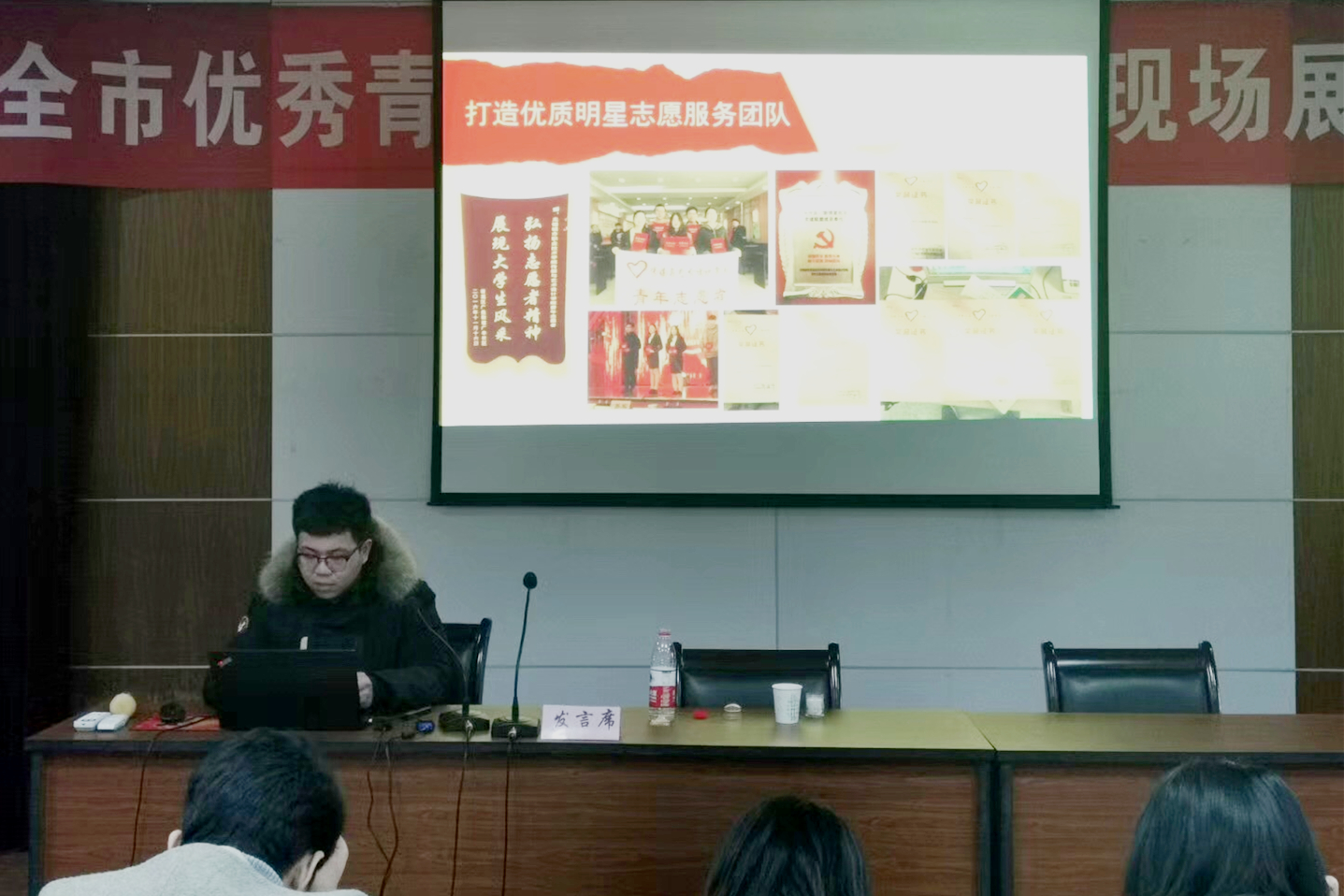 在展示会现场,我校志愿者通过现场演示、视频、PPT等手段,全面展示了项目目标、服务内容、项目管理、运营保障、社会影响力等内容,获得各位评委的一致好评。