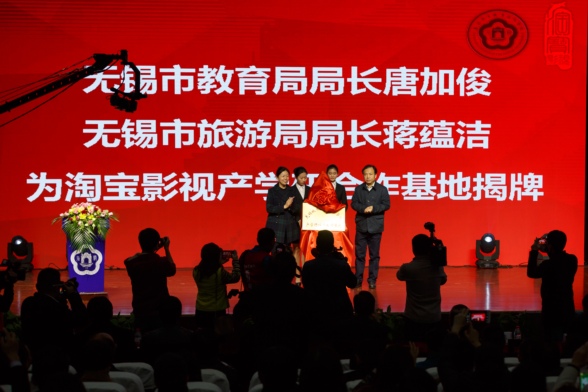 为贯彻落实国家、省、市大力发展混合所有制职业教育的意见精神,全面落实无锡市委市政府提出“打造现代产业发展新高地”的战略要求,满足无锡大力发展影视产业对人才的实际需要,同时也为解决影视专业学生校内实训的现实需要,我院紧密结合了当前国有企业混合所有制改造实践和我国职业院校办学体制改革的已有探索,采取校企合作的形式,与无锡市淘宝影视文化传播有限公司共建校内影视综合实训基地,成立学院首个实体运行的混合所有制二级学院——影视学院,为地方经济社会发展培养影视专门人才。 2017年11月30日上午9:58,我院影视学院揭牌仪式在学院北校区大报告厅隆重举行。无锡市人民政府副市长高亚光,中央电视台原常务副台长、未来影像国际影视演艺学院名誉院长于广华,中华文化促进会副秘书长、未来影像国际影视演艺学院执行院长冯学东,香港金像奖协会主席、资深影视监制、编剧、导演文隽,中国文艺志愿者协会副秘书长马康强,无锡市教育局局长唐加俊,无锡市旅游局局长蒋蕴洁,无锡市科技局副局长徐重远,香港著名影视制作人吴节强,上海电影艺术学院院长是科圣,上海电影艺术学院执行院长郁康淳,江苏龙源兄弟影视有限公司董事长郁康雄,原敦煌市文联专职副主席、美协主席、著名书画家朱铤,无锡国家数字电影产业院副总监凌律巍,无锡淘宝影视文化传播有限公司董事长杨斌,无锡淘宝影视科技传媒有限公司董事长王新华,无锡市淘宝影视文化传播有限公司艺术总监苗子矜,无锡亨利富建设发展有限公司总经理吴小明等领导及嘉宾莅临仪式。学院党政领导,各二级学院(部)、各部门主要负责人,师生代表参加仪式。仪式由学院副院长瞿立新主持。 本次活动受到广泛关注,现代快报、无锡日报、无锡电视台、中国网络资讯台、新浪无锡、无锡教育电视台等多家国家、省、市级媒体记者进行了现场采访报道。 仪式上,市教育局局长唐加俊、市旅游局局长蒋蕴洁为影视综合基地揭牌。中央电视台原常务副台长于广华、中华文化促进会副秘书长冯学东为未来影像国际影视演艺学院无锡(影视学院)预科培训基地揭牌。市政府副市长高亚光为影视学院揭牌。我院党委书记高建宁为影视学院院长文隽颁发聘书。 影视学院院长文隽受聘后表示,作为一名有着40年从业经验的老影视工作者,非常荣幸地受聘担任影视学院的首任院长,下一步将带领团队继续深化产教融合、校企合作,加快学院建设发展步伐,积极打造一流影视设施,引进一流师资队伍,开发一流课程体系,深化国际交流合作,努力培养和造就更多的高素质技能型影视专门人才,为无锡乃至全国影视文化产业的发展做出应有的贡献。 北京电影学院、八一电影制片厂等兄弟单位及高峰、杨柳等影视界知名人士通过视频送上祝贺。上海电影艺术学院院长是科圣代表兄弟院校现场致贺词,表示影视学院的成立,必将进一步推动无锡高等教育改革发展步伐,为无锡打造“中国影视之都”、“世界级影视特色小镇”发挥更大的作用。期待两校继续加强交流与合作,坚定走中国特色社会主义文化发展道路,激发师生文化创新创造活力,为共同推动国家影视产业发展和文化繁荣作出我们应有的贡献。 仪式上,我院院长应可福、无锡国家数字电影产业园副总监凌律巍、无锡影视文化传播有限公司董事长杨斌三方签订战略合作协议,共建影视人才培养基地,共同培养影视专门人才。 随后,中央电视台原常务副台长于广华讲话,对学院的揭牌表示热烈祝贺。他指出,城市学院建校100多年来,始终秉承“弘毅”校训,为祖国培养了如曾涛、徐铸成、钱松嵒、吴冠中、杨荫浏、陈瘦竹、徐中玉等一大批文化艺术界著名学者。他指出,文化产业已成为我国战略性新兴产业,影视产业更是业界公认的文化产业的龙头,预计到2020年,中国银幕数量预计超过6万块,年产影片约800部,年票房预计达到700亿元,将成世界第一大电影市场。影视学院的成立,将为无锡打造“中国电影名镇”发挥积极的作用。他表示,作为未来影像国际演艺学院无锡预科培训基地,未来影视将积极支持影视学院的建设发展,共同为国家经济社会发展和文化事业繁荣贡献力量。 市人民政府副市长高亚光作重要讲话。她指出,影视学院的成立,是城市学院贯彻落实党的十九大精神,坚定文化自信,助推文化强市的一项重要举措。作为我市唯一的市属高校,无锡城市职业技术学院主动作为,率先成立实体运行的混合所有制二级学院,这既是教育领域混合所有制改革的一次大胆探索,也是产教融合校企合作的一次实践创新。她强调,我市大力发展影视产业,就是要满足人民日益增长的精神文化需求,这不仅是中国特色社会主义文化建设的基本要求,也是我市文化建设的重要出发点和落脚点,更是全市人民群众的热切愿望。她希望城市学院以此次影视学院揭牌为契机,全面贯彻党的教育方针,落实立德树人根本任务,坚持产教融合、校企合作,力争将影视学院建成国内知名的影视院校,成为无锡国家数字电影产业园的副中心和影视文化产业的重要增长极,同时,希望学院全面总结评估混合所有制改革的经验做法,进一步扩大混合所有制项目试点的层次和范围,进一步整合政、行、企、校等资源,提升办学层次和办学水平,为推进高水平全面建成小康社会、建设“强
