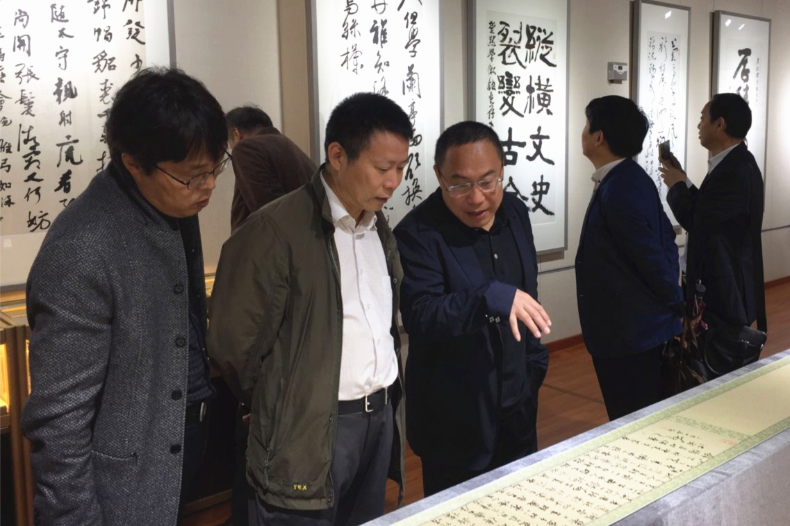 10月15日,崇明楚默学术馆开馆仪式在上海崇明区档案馆举行,无锡市人大常委会副主任吴峰枫,中国书法家协会副主席翟万益,上海市书法家协会秘书长潘善助等领导出席。院党委书记高建宁出席开馆仪式并与与会嘉宾一同为学术馆揭牌。 楚默,原名盛东涛,1946年生于上海崇明岛,是全国著名诗学、书学、美学、美术史论家,著有《楚默全集》20卷,另主编《中国书法全集》中的七卷,也参与编写了《篆刻学》。2006年、2009年、2015年,楚默三次获中国书法兰亭奖理论奖。 位于我院南校区图书馆内的楚默学术馆已于2015年6月落成开馆,馆内主要陈列楚默先生的著作、手稿、书画作品及学术经历介绍,以及当代最有影响力的学者、书画家对楚默先生的评述以及赠予学术馆的书画作品及各种学术著作。开馆两年多以来,学院依托楚默学术馆成功举办了多场次学术观摩、交流活动,吸引校内外两千余人次来馆参观学习,充分发挥了学术馆学术研究功能,扩大了学术馆的对外影响力。同时,楚默先生挚友、国内众多书画大家也纷纷为场馆捐赠作品及著作,丰富了馆藏资源。 此次崇明楚默学术馆开馆,是对楚默书画研究成果的进一步肯定和展示,对丰富当地文化艺术生活、强化当地书画艺术氛围起到重要的示范带动作用。 院党委书记高建宁出席开馆仪式并与与会嘉宾一同为学术馆揭牌 院党委书记高建宁参观崇明楚默学术馆 院党委书记高建宁参观崇明楚默学术馆 |