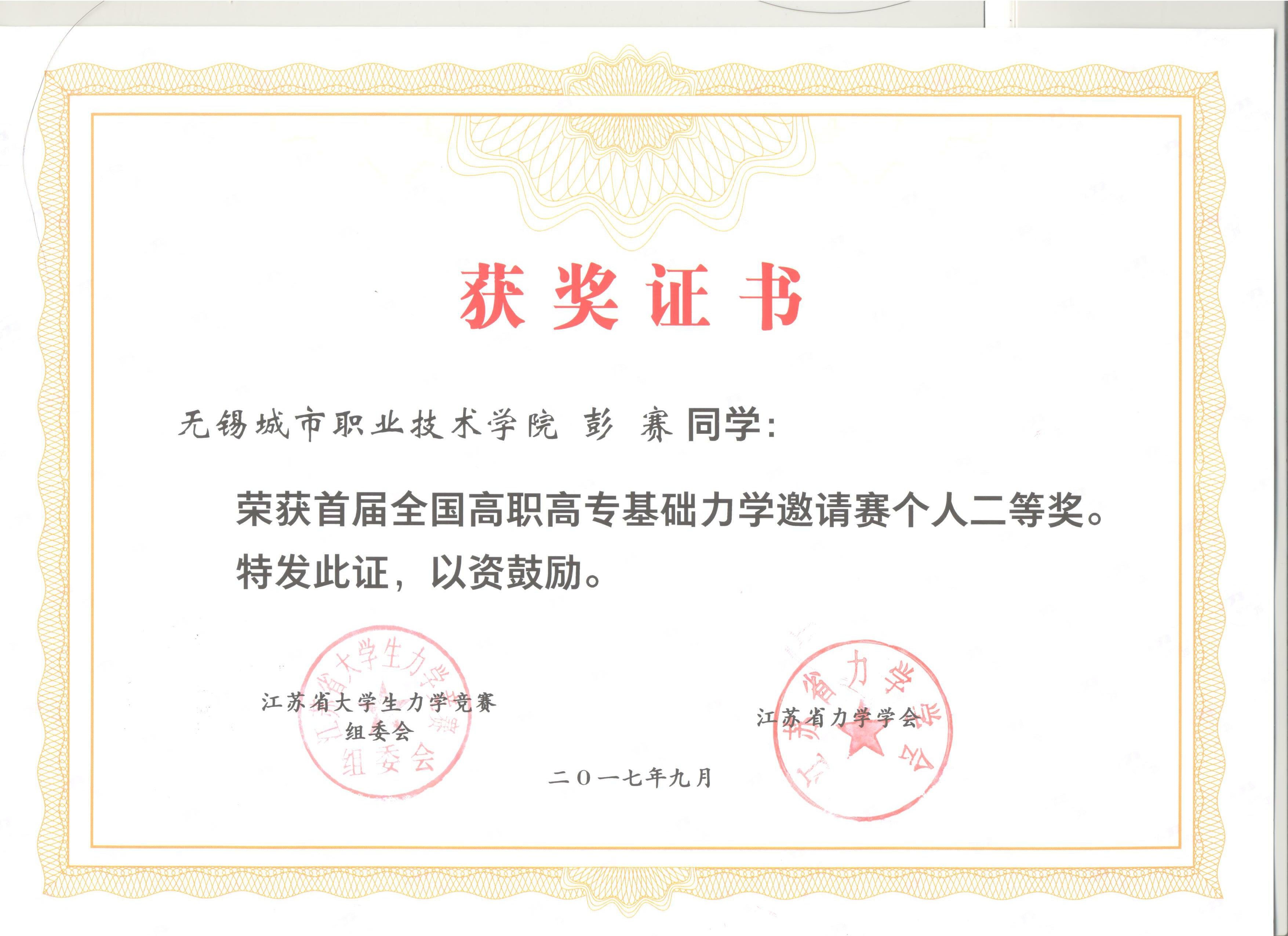 近日,第十届全省大学生力学竞赛暨首届全国高职高专大学生基础力学邀请赛评奖结果公布,我院建筑与环境工程学院彭赛同学在安晶、张莉、刘国华老师指导下荣获第十届江苏省大学生力学竞赛(高职高专)个人二等奖及首届全国高职高专大学生基础力学邀请赛个人二等奖。 此次竞赛吸引了来自江苏、浙江、四川、湖北、黑龙江、湖南、广东等省份39所学校的1146名学生参加,试题结合力学原理在实际中的应用,题型新颖,难度较高,考察学生专业的理论功底以及创新思维等。 学院通过组织学生参加竞赛有效地促进了相关课程的改革与建设,提升了学生的学习兴趣,培养他们分析、解决实际问题的能力。 学院近年来以提高学生职业素养为目标,创新多种教育教学实践方式,通过系统的基础知识培训和面向工程应用的拓展培训,为学生提供了多次集成基础知识和拔高技术应用技能的机会,学院也将继续开拓,为深化内涵建设,服务学生成长成才贡献力量。