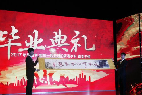 6月28日上午,学院2017届学生毕业典礼在图文信息中心大报告厅隆重举行。院长应可福,党委副书记俞力元,副院长瞿立新、王远东、陈新,各二级学院教师和毕业生代表齐聚一堂,共同见证城院毕业学子们开启人生未来的崭新历程。典礼由院党委副书记俞力元主持。 伴着开场视频《城院》,典礼拉开序幕。副院长瞿立新宣读2017届优秀毕业生表彰决定,并为优秀毕业生代表颁发证书。校学生会苏祥同学作为毕业生代表发言,他深情回忆了大学的三年青春,道出了对母校的深深眷恋和殷切祝福。随后,苏祥将印有毕业生手印的“士不可以不弘毅”校训卷轴赠与学院。教师代表袁灿兴将“相信自己,过好自己,保持底线,有所担当”作为离别赠言送给毕业生。 随后,应可福院长在典礼上深情寄语毕业生:在城院,你们有成功也有挫折、有追求也有彷徨、有梦想也有失落;在城院,你们收获了知识、增长了阅历、结识了知己,这些都将成为你们一生中宝贵的财富!应院长希望同学们能够永远保持三颗心:“学无止境”的恒心、“技报天下”的雄心、“豁达从容”的耐心,用理想和坚持,在今后的人生道路上继续坚韧不拔、弘毅致远,并祝愿同学们一帆风顺,前程似锦。 傣族舞蹈《水的女儿》、相声《家乡赞》等精彩的节目表演穿插于典礼中间。最后,典礼以歌曲《最初的梦想》结束。 本次毕业典礼还特地制作了放大版的城院毕业证、朋友圈框架等毕业景观供学生拍照留念,毕业证的发证时间是2017年6月,有效日期是永远,同学们在毕业证前纷纷照相,留下永恒的印记。 院长应可福致辞 院长应可福为毕业生代表颁发毕业证书 院党委副书记俞力元主持典礼 瞿立新副院长宣读表彰决定 瞿立新副院长为优秀毕业生代表颁发证书 教师代表袁灿兴发言 毕业生代表苏祥发言 印有毕业生手印的校训卷轴 傣族舞蹈:《水的女儿》 相声:《家乡赞》 与会领导与优秀毕业生代表和演职人员合影 毕业生在校训卷轴上按下手印 创意毕业证书 |