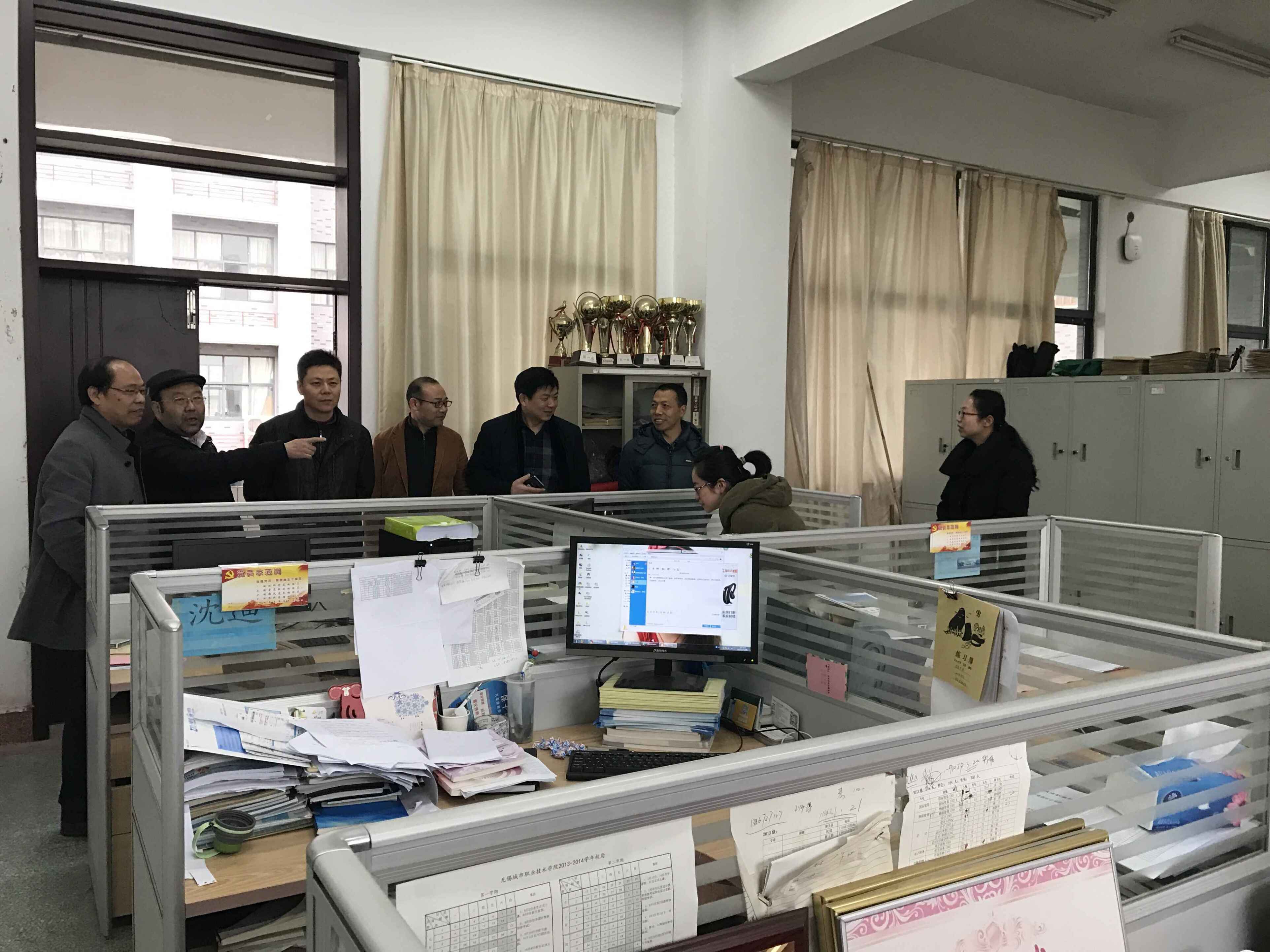 2月20日,新学期伊始,院长应可福、副院长瞿立新、陈新在院办、教务处、学工处、后管处、工会等部门负责同志陪同下,检查指导新学期开学准备工作。 应院长一行检查了校园及周边环境,并实地走访了二级学院、食堂等场所。在二级院系,校领导详细询问了教职员工到岗、学生报到注册和新学期学生课程安排等情况,了解了各单位新学期的工作思路和具体举措,并对新学期重点工作提出了要求。应院长勉励广大教职员工在新的一学期,要以饱满的工作热情投入到学校教学科研和管理服务工作当中去,积极提升学院办学质量。在食堂,应院长详细了解餐饮供应情况,亲切询问学生对食堂饭菜品种、价格、质量是否满意,以及有什么需要改进的地方,要求食堂要全面提升管理水平和服务品质,真正让师生吃得开心、放心。 听取各单位汇报及实地查看后,应院长充分肯定了开学准备工作,认为各二级学院和职能部门能够迅速投入到开学工作中来,做到有条不紊,为新学期开学做了大量细致的准备工作,校园学习、工作和生活环境温馨和谐,广大师生员工精神饱满,开学初各项工作已步入正轨。他还要求近期要认真组织一次校内外安全大检查,要做好相关突发事件的应急预案工作,保障新学期教学秩序稳定。 走访贸易金融学院 走访会计学院 视察食堂