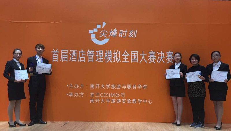 首届全国“尖烽时刻”酒店管理模拟大赛由南开大学旅游与服务学院主办,芬兰CESIM公司及南开大学旅游实验教学中心承办。此次比赛吸引了全国50多所高校的260支队伍参赛,最终来自36所院校的44支队伍晋级决赛,其中不乏来自南开大学、中山大学、厦门大学、首都经济贸易大学、南京财经大学等名牌大学的参赛队伍。作为决赛中仅有的两所大专院校之一,我院选手在指导老师的带领下,认真准备,奋力拼搏,精彩演绎,最终在决赛中力压南开大学、云南大学等高校取得优异成绩。