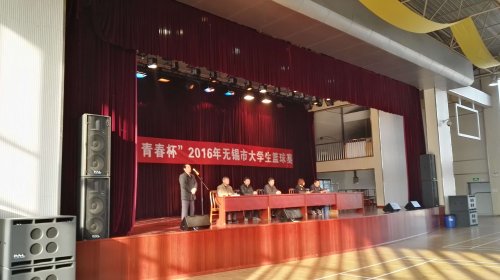 12月8日上午,由无锡市教育局成人教育协会、无锡市篮协大学生联合会主办的“T12·青春杯”2016年无锡市大学生篮球赛在我院北校区体育馆隆重开幕,开幕式由市学生体质健康促进中心黄德刚主任主持,成教协会会长张志新同志出席开幕式,我院副院长陈新致欢迎词。