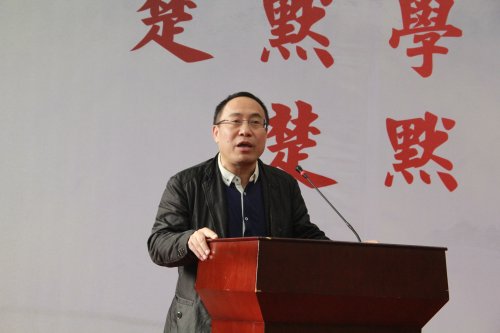 院党委书记高建宁为楚默学术馆馆长朱培尔、副馆长孙璘、蔡爱国、朱谊宾颁发聘书 楚默先生讲话 中国书协副主席翟万益先生讲话 中国书协翟万益副主席、市人大吴峰枫副主任、学院高建宁书记、应可福院长 共同为朱培尔书画篆刻工作室、孙璘书法工作室和书画创研中心揭牌
