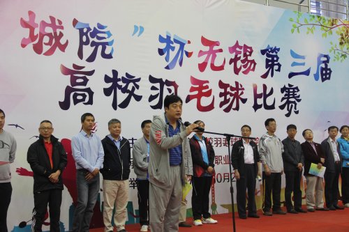 无锡市体育局副局长、无锡体育产业发展集团党委书记张宏、无锡高校羽毛球联合会主席、无锡职业技术学院院长龚方红和无锡高校羽毛球联合会副主席、江南大学副校长金征宇和各参赛高校的领导、嘉宾及全体参赛队员共同出席了开幕式。开幕式由无锡高校羽毛球联合会常务副主席、无锡开放大学党委副书记王仁刚同志主持。