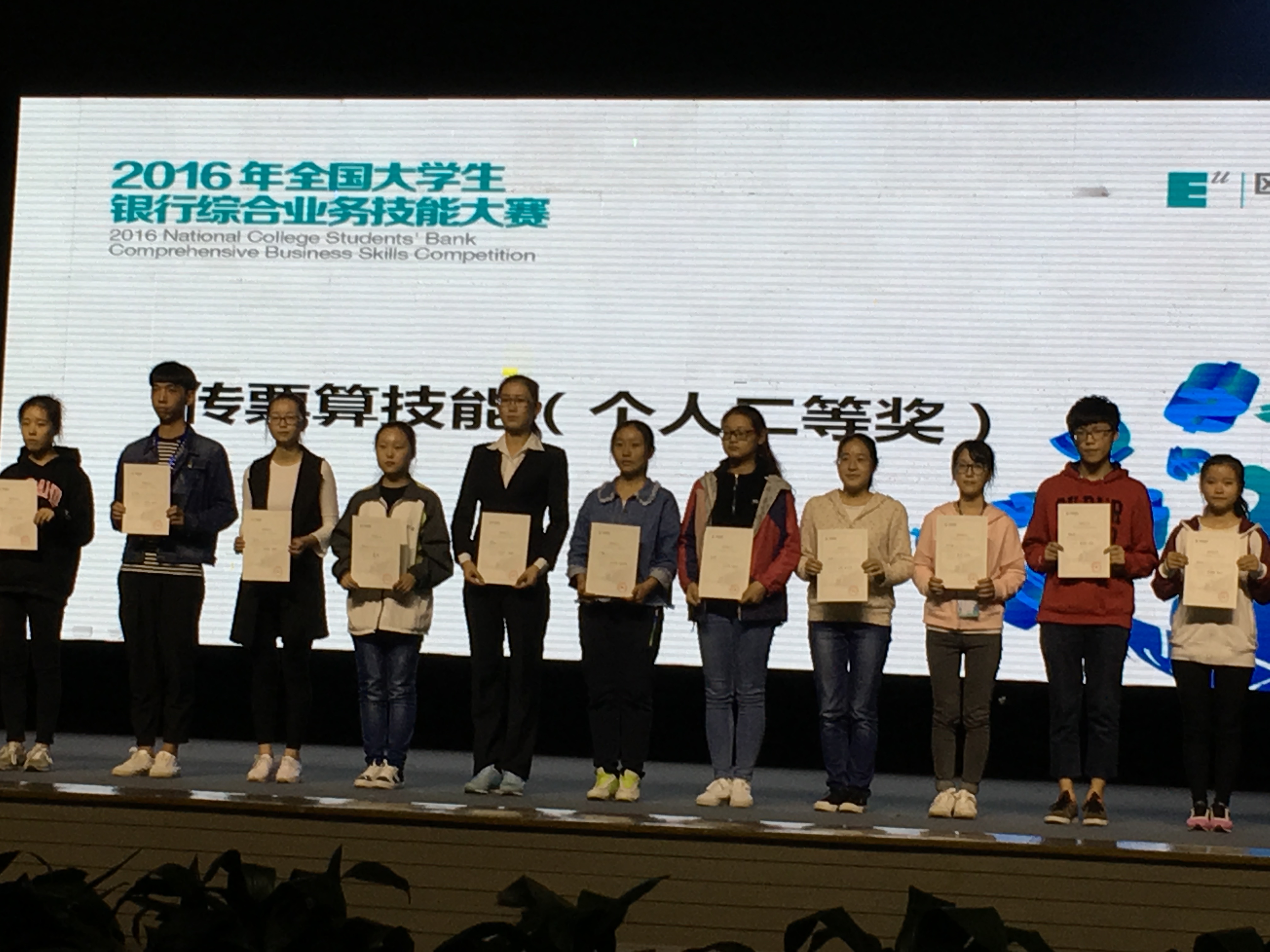 10月22日,2016年全国大学生银行综合业务技能大赛在西安欧亚学院举行。大赛由全国金融职业教育教学指导委员会主办、西安欧亚学院学院承办,来自全国90所本科及高职院校的近300名参赛选手参加了比赛。本次比赛聚集了全国应用型高校金融专业包括浙江金融职业学院、深圳信息职业技术学院等的精英团队,奖项的争夺可谓剑拔弩张、竞争激烈。 此次大赛成绩的取得,既是参赛学生刻苦努力、发挥出色的结果,也是指导老师辛勤辅导、积极备战的体现,更是贸易金融学院近年来高度重视培养学生职业技能的成果展示。这标志着我院在改革人才培养模式,努力提高办学质量和水平的道路上又迈出了可喜的一步。 我院参赛团队获2016年全国大学生银行综合业务技能大赛团体三等奖 比赛现场 我院学子上台领奖