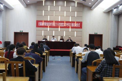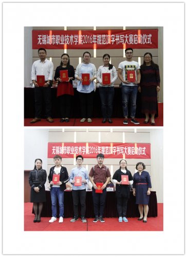 10月18日下午,我院2015年规范汉字书写大赛总结大会暨2016年规范汉字书写大赛启动仪式在小报告厅举行。院党委副书记俞力元,基础课部、团委负责人以及各学院党总支书记出席活动并为获奖单位与个人颁奖。 规范汉字书写大赛由院团委与语言文字工作委员会精心策划,共同举办。大赛主题为“经典无锡”,书写内容为历代名人咏无锡的经典诗句,作品类别分软笔楷书、软笔隶书、软笔行书、硬笔楷书、硬笔隶书、硬笔行书等6类书体,比赛分为初赛、决赛两个阶段。初赛期间各二级学院广泛发动,积极宣传,认真组织,严格甄选,共有36幅作品脱颖而出,入围决赛。经过大赛评委会认真评选,最终评出硬笔书法一等奖4名,二等奖9名,三等奖17名;软笔书法一等奖2名,二等奖2名,三等奖2名;优秀指导老师19名,优秀组织奖5个。 规范汉字书写大赛旨在贯彻落实国家语言文字法律法规,大力推广和规范使用国家通用语言文字,提升大学生语言文字规范意识和应用能力,引导大学生热爱祖国文字和书法艺术,继承和弘扬中华优秀传统文化。从2009年开始,规范汉字书写大赛就被列为我院推广普通话宣传周的重点活动,迄今已连续举办七届。 大会现场 院党委副书记俞力元讲话 为获奖代表颁奖