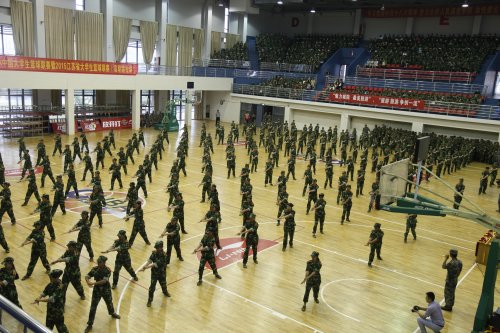 激昂青春展军训健儿风采,无畏艰难显城院骄子魅力。9月28日上午,学院2016级新生军训成果汇报暨表彰大会在南校区体育馆隆重举行。院党委书记高建宁,党委副书记俞力元,副院长瞿立新、王远东、陈新,解放军73055部队营长金玉堂,人武部副部长王军以及各二级学院、各部门领导、老师、学生共同观看汇报演出。大会由副院长陈新主持。 大会在庄严的国歌声中拉开帷幕。各表演方队严阵以待,军姿挺拔,步伐整齐划一,铿锵有力,以饱满的热情接受领导的检阅,充分展现了昂扬向上的士气,嘹亮的口号声回荡在会场上空。紧接着,代表方阵向大家展示了三大步伐、内务整理、军体拳、擒敌拳等训练科目,展示了14天来的艰苦训练的成果,标准整齐的动作赢得了在场师生的阵阵掌声。 在随后的表彰大会上,院党委书记高建宁为承训部队赠送锦旗,并对他们表示真挚的感谢。人武部副部长王军同志宣读了军训“先进集体”、“标兵排”、“先进个人”等表彰决定。 大会最后,院党委书记高建宁作重要讲话,他希望同学们继续发扬在军训中养成的艰苦奋斗、勇于拼搏的精神,努力“把握大学里的每一分钟,全力以赴我们心中的梦”,在刻苦学习中增长智慧、净化心灵,成长为知识丰富、人格健全的优秀人才。 大会在热烈的掌声中圆满落下帷幕。 院党委书记高建宁致词 学生方阵接受检阅 内务整理 军体拳表演 擒敌拳表演 院党委书记高建宁向承训部队赠送锦旗 受表彰代表领奖 |