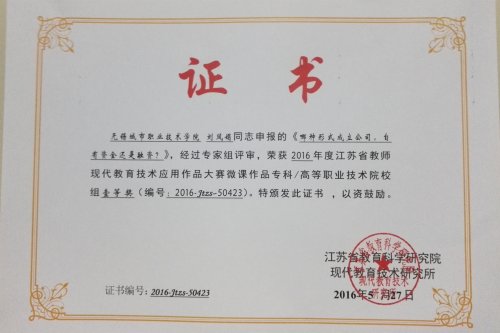 | 我院刘凤娟博士在2016年度江苏省教师现代教育技术应用作品大赛中喜获佳绩 | |||