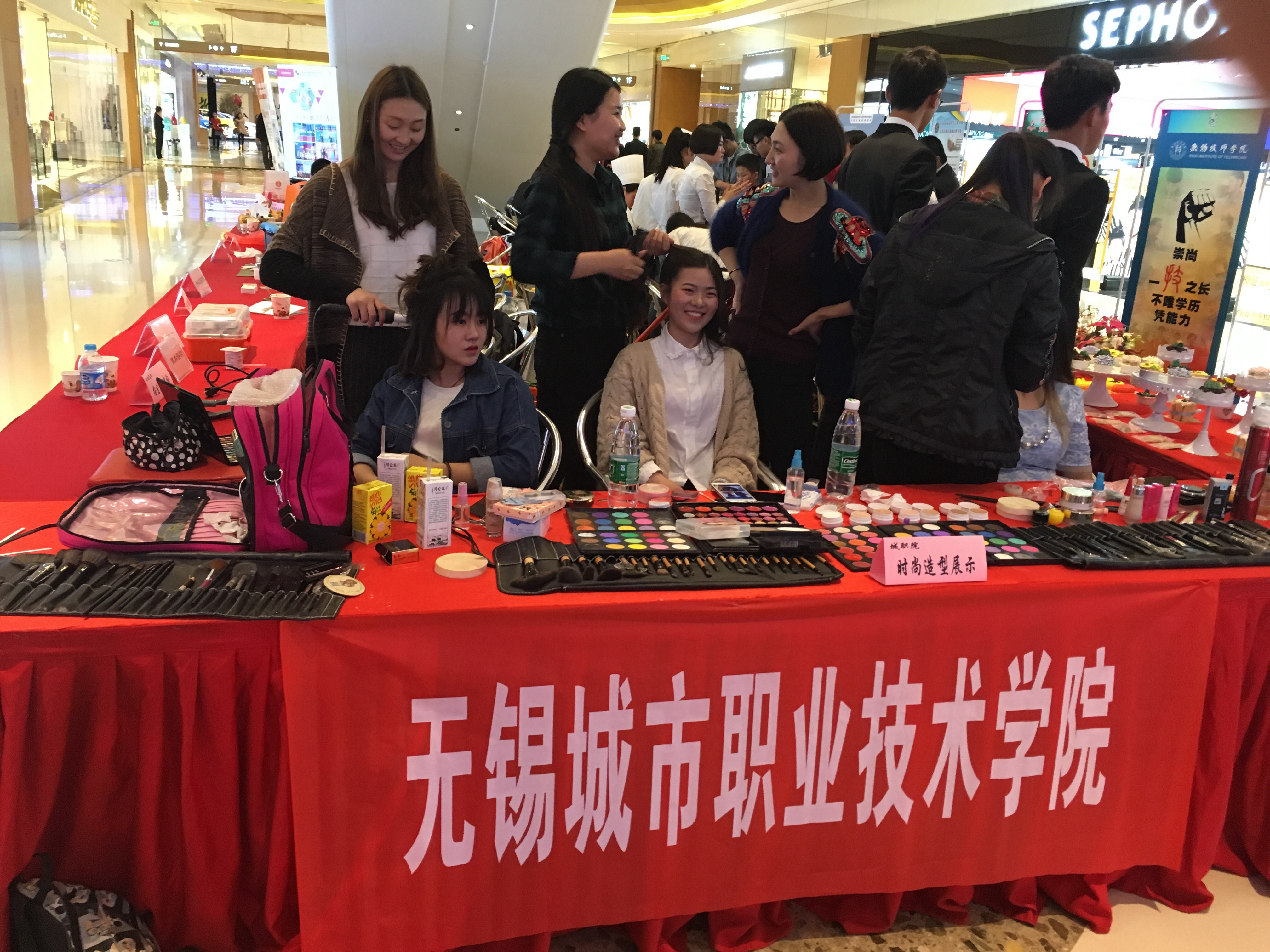 5月8日上午,由市教育局、市发改委、市经信委、市财政局、市人社局、市农委和市工商联等7个部门联合主办的2016年无锡市“职业教育活动周”在无锡万象城正式启动。我院副院长瞿立新出席启动仪式,传媒与艺术设计学院王茜老师携学生团队在现场进行时尚造型展示,师范学院殷天瑶同学现场带来精彩的二胡演奏。 当天,全市14所中高职院校参加了集中展示活动。活动现场,各院校纷纷推出本校职业教育发展成果,图文并茂地展示了近年来职教发展亮点。各职业院校还结合学科、专业和实训设备等优势,在现场设立摊位,开展为民服务活动。 我院形象设计专业的学生现场展示了造型设计、时尚(创意)妆面、发型设计等专业技能。王茜老师的悉心指导与讲解,师生熟练的专业手法,引得过往路人频频驻足观赏并踊跃报名,接受免费造型服务。无论是日常发型等还是时尚妆面,我院学子均认真细致地完成,充分展示了扎实的专业功底及创新的专业意识,获得了一致认可与好评。通过互动,不少围观群众对我院产生浓厚兴趣并询问专业情况、就业前景等。 在文艺演出现场,我院师范学院殷天瑶一曲《美国往事随想曲》赢得满堂彩,殷天瑶同学曾凭借过硬的二胡专业在国家级、省级技能大赛中斩获佳绩,此次参演也充分展示了我院学生的青春活力和学院艺术教育成果。 据悉,本次“职业教育活动周”将持续至5月14日,主题为“弘扬工匠精神,成就出彩人生”。活动周期间,无锡各职业院校将面向中小学生、家长和社区居民开放校园,开展职业体验观摩活动、校企合作成果展示活动、校园文化展示活动、产教融合对话活动等。我院也将开展微课资源建设培训会、优秀毕业生进校园、企业高管进校园专题报告会、企业洽谈招聘等活动,同时组织师生走出校门,开展便民服务,进一步弘扬劳动光荣、技能宝贵、创造伟大的时代风尚,向社会展示学院职业教育成果,同时展现学院师生崇德强能、知行合一的精神风貌,扩大职业教育影响力。