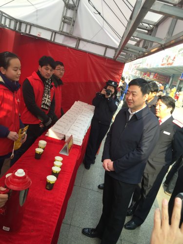 “感觉在火车站度过寒假,才是寒假生活应该有的模样。”在无锡火车站开展志愿者活动的马莲在朋友圈曾写下如此感悟。进入无锡城市职业技术学院师范学院语言创意系软件1215班后,马莲的三个寒假都是以“欢乐成长社”志愿者的身份在春运志愿服务中度过的。 据了解,语言创意系“欢乐成长社”自2012年10月17日成立以来,秉着“帮助他人,欢乐自己,充实自己”的理念,引导学生为社会提供志愿服务,同时在志愿服务中扩展视野和兴趣,为他们的人生树立积极目标。每年年底都有学生被评为“无锡市优秀志愿者”。 “欢乐成长社”从2013年开始加入无锡南广场的春运志愿服务活动,到今年已是第四个年头,从2013年的“志愿服务一日活动”到今年的“志愿服务十五日活动”,活动天数逐步增加,原因就在于同学们都觉得“志愿服务让人‘上瘾’”。今年语言创意系共有190名学生加入2016年无锡春运志愿活动。他们的主要工作是在广场上设立“爱心驿站”送温暖送祝福,进行车站咨询服务,在候车厅内协助乘客取票或帮忙疏通进站通道等。 2月2日是学生们志愿服务的第十日,清晨阳光下同学们意外地迎来了一位特殊的领导----无锡市市长汪泉。正率队检查春运和节日安全的汪市长看望了“欢乐成长社”的志愿者们,从发放免费道德宣传书籍的摊位,到送热腾腾姜茶的摊位,再到与东林小学小学生合作的手书春联摊位,每一处汪市长都停下脚步并亲切询问,当他听闻学生们坚守在此的时间后,大力地赞扬道:“你们真辛苦,了不起啊。” 的确,他们是一群了不起的志愿者----从1月24日全国春运第一天起,同学们就经历着今年冬天各种天气的考验:大寒潮天,冰冻雨天,雪纷飞天。冷是大家讲的最多的感受,但大伙希望用笑脸和服务为回家的旅客带来“暖冬”,有汪泉市长的勉励,志愿者们对圆满完成今年的“任务”就更有干劲了。