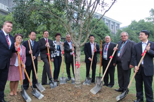 11月5日下午,罗马尼亚哈尔吉塔郡郡长吉安·安德烈·艾德里安率政府及企业家代表团一行访问我院,无锡市政府外事办公室副主任詹熠等陪同参访。学院党委书记高建宁、院长郁宝荣、副院长瞿立新及相关二级学院、职能部门负责同志热情接待了来访人员。 会议由郁宝荣院长主持。他首先向来宾表示热烈欢迎并介绍了我院的发展情况以及国际合作与交流项目开展概况。随后,高建宁书记致欢迎词,向罗方代表团介绍了学院发展的特色,并高度肯定了我院与罗马尼亚智慧大学结为姐妹大学并实质性推动两校间合作项目的努力。 会议期间,罗方哈尔吉塔郡郡长转交了智慧大学校长签署的项目合作协议,并与弗勒希察市市长分别致辞感谢我院的盛情接待,同时期望我院能与智慧大学加强交流合作,双方还就我院外派对外汉语教师项目的推进进行了深入探讨。市外办詹熠副主任高度评价了我院与智慧大学的交流合作成效并对我院的国际合作与教育交流提出宝贵意见和建议,会谈最后在学生与外宾的提问互动中圆满落幕。 为了庆祝我院与罗马尼亚智慧大学结为姐妹学校,我院在会议后邀请罗方代表共植友谊树,象征并祝愿双方友谊长存、万古长青。为了增进罗方对我院的了解,学院领导随后陪同外宾参观了旅游学院的实训室并观摩了学生的茶艺实训课堂。 罗马尼亚代表团的此次来访,将进一步促进我院与智慧大学以及哈尔吉塔郡、弗勒希察市的教育合作与交流。 双方交流座谈 学院领导陪同外宾观摩旅游学院茶艺实训课堂 双方共植友谊树 合影留念 撰稿:张洋 |