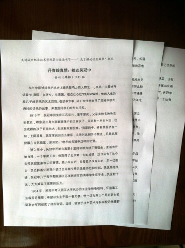 无锡是吴文化的发源地,文化积淀深厚,内涵丰富。其独特的城市特质、地域文化的开掘与传承是我院大学生思想道德建设的重要抓手。以“品读红色经典 弘扬城市精神 感悟非凡人生”为主题的第六届学院读书节,通过开展系列文化实践活动,让广大城院学子深入了解吴地历史、感知吴地文化,从而树立爱祖国、爱家乡、爱学校的良好品德。 今年4月以来,院图书馆联合各二级学院开展了吴文化社会实践系列活动。分别有“无锡桥文化、古建筑、江南园林特色调研”、“无锡历史文化及工商经济的起源与发展调研”、“无锡物联网技术的起源与发展调研”以及“我了解的校友故事”征文比赛等,学生通过查阅资料、实地走访、互相交流等方法学习吴文化和校史知识,将耳濡目染的优秀文化传统和各种文化现象转化为理性的认知和思考。活动共收到学生调研报告和PPT文档67篇。经评审,建筑与环境工程学院造价1403班的《荡口古镇》、贸易金融学院理财1402班的《无锡近现代工商经济发展》、物联网工程学院汽修1401班的《无锡物联网技术的起源与发展》以及会计学院会计单招1401班的《丹青绘真情:校友吴冠中的故事》荣获一等奖,另评出二等奖8名、三等奖14名以及优秀奖15名。 近年来,我院紧扣时代脉搏,以科学理论指导育人工作,构筑了一大批体验式德育平台,多渠道、多形式开展崇尚地域人文精神的德育实践活动,强调体验,突出参与,让学生乐于亲近,勤于实践,在体验中积淀感悟,在感悟中成长进步,有力地促进了良好校风、学风的养成。 学生优秀作品展示 学生优秀作品展示 学生优秀作品展示 学生优秀作品展示 撰稿:高丽金 |