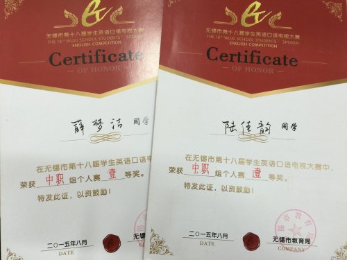 | 我院学生在无锡市学生英语口语电视大赛中荣获一等奖 | |||