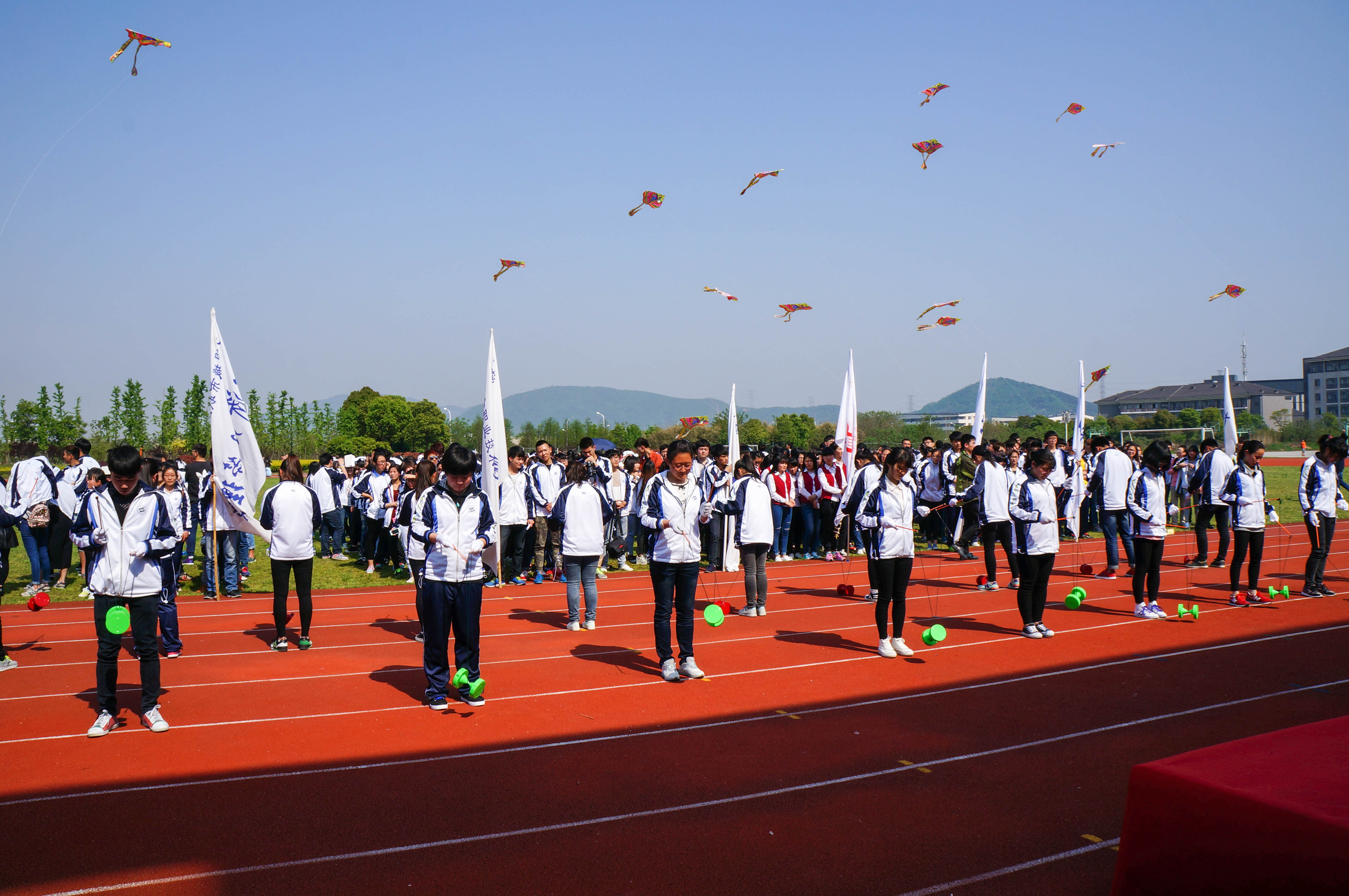 开幕式以“走下网络、走出宿舍、走向操场”趣味运动会的形式展现,一段青春活泼的啦啦操拉开活动帷幕。现场,学生在操场上放起风筝、玩起空竹,空竹发出的高低起伏、活泼热闹的声音,配上空中飞翔的风筝,赢得场上阵阵欢呼。21-Guns社团跳起了国家标准广场舞《小苹果》。院领导还和各系师生一起玩起了趣味仰卧起坐、撕名牌大战、双手撑杠、托球比赛、十人同足、无敌风火轮等趣味运动。据悉,在随后的4个工作日,各系还将举办各式各样的趣味运动会吸引全院学生参加。