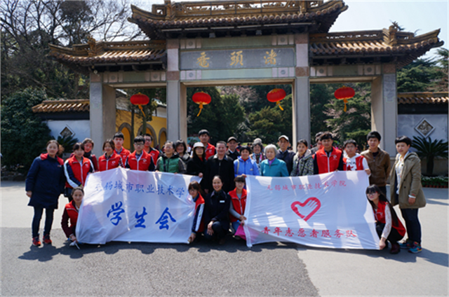 3月25日下午,来自院团委、学生会的18名师生志愿者陪同荣巷街道的10位残疾朋友一同游览鼋头渚,观赏各种花草,感受春天的美好。