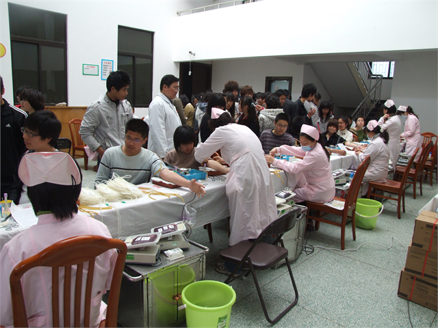 4月22日下午,梅园校区大学生活动中心一楼大厅内暖意流流,我院青年学生无偿献血活动在此举行。来自各系的学生们积极踊跃地参与到这项公益事业中,通过无锡市中心血站,向全社会奉献出自己的一片爱心。活动中,共有120余名同学献出了自己宝贵的鲜血,他们用责任和爱心搭起了一座通往生命绿洲的桥梁。