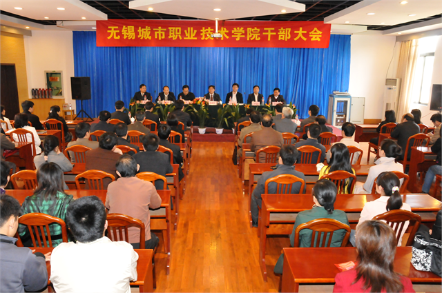 4月28日上午,我院在学生活动中心三楼报告厅召开干部大会。中共江苏省委组织部干部五处陈东伟处长宣读省委关于我院院长的任免决定,任命周伟灿同志为无锡城市职业技术学院院长,免去沈毅烈同志无锡城市职业技术学院院长职务。中共无锡市委组织部周建军副部长宣读市委关于我院党委副书记的任免决定,任命周伟灿同志为无锡城市职业技术学院党委副书记、免去沈毅烈同志无锡城市职业技术学院党委副书记职务。