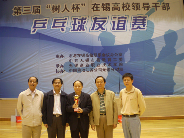 5月8日,由中共无锡市委教育工委主办的第三届“树人杯”在锡高校领导干部乒乓球友谊赛在无锡商业职业技术学院举行,全市在锡高校共15个代表队参赛,我院党委书记高国强、党委副书记刘彬、副院长邹亚平、副院长瞿立新参加比赛,并荣获本次比赛团体第八名。