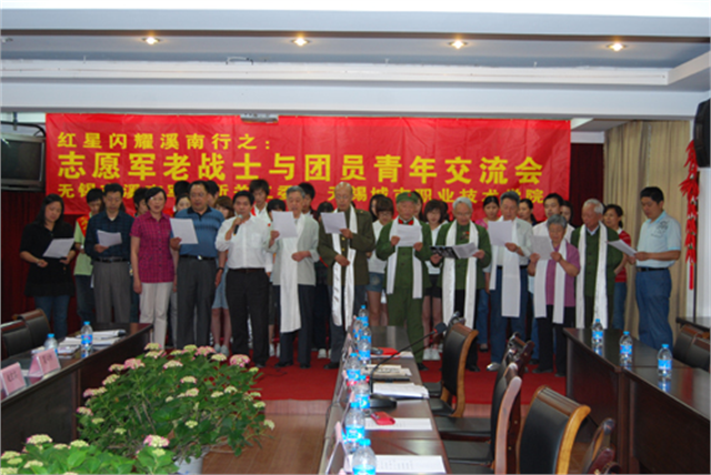 近日,我院经济贸易管理系青年志愿者在院团委书记夏心怡、经管系党支部书记赵宏宾的带领下赴溪南干休所,与志愿军老战士举行了一场别开生面的慰问交流会。同学们通过舞蹈、歌曲、朗诵和相声等节目,表达了他们对志愿军老战士的崇敬和赞美之情,并向老干部们赠送了“走进朝战前辈,感怀峥嵘岁月”的大横幅。军队离休干部董振泰、宋月玲夫妇向城市职业技术学院赠送了由他们参与编撰的回忆录《峥嵘岁月》续集,蒋志松老前辈给学生们挥墨题词:“弘扬志愿精神,爱心奉献社会”。 交流会上,同学们还与志愿军老战士进行了面对面、心与心的交流。 |