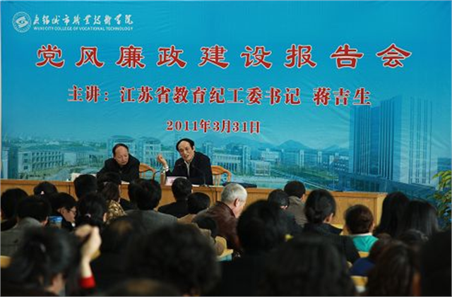 3月31日下午,我院召开党风廉政建设报告会,邀请省教育纪工委蒋吉生书记作专题报告,院党委书记高国强主持会议,院领导周伟灿、刘彬、瞿立新以及校管中心监察室主任张静红及部分市属院校纪委委员以及我院全体党员、机关干部共180人参加了报告会。