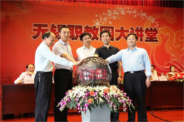与会领导共同触亮“无锡职教园大讲堂”LED启动球