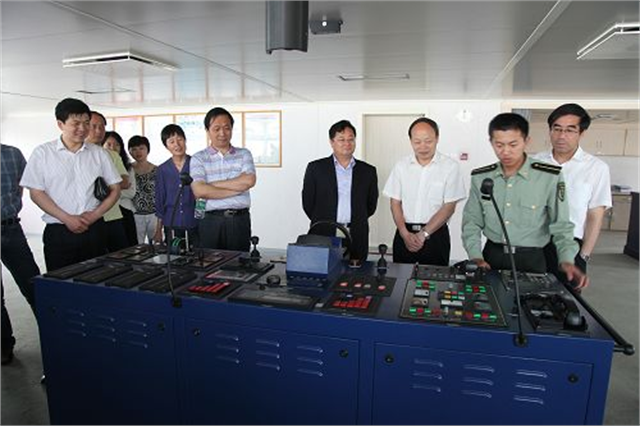 院党政领导高国强、周伟灿等参观“远望六号”驾驶室