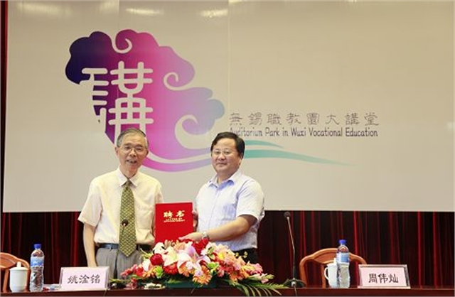 6月16日下午,图文信息中心报告厅内不时传来阵阵掌声,大家正在聆听江南大学人文学院教授、博士研究生导师,古代文献研究所所长、中央电视台“百家讲坛”栏目主讲姚淦铭教授有关《老子与智慧人生》的讲座,这是职教园大讲堂开讲以来的第二次讲座。院党政领导高国强、周伟灿、刘彬、瞿立新等和同学们一起聆听了姚教授精彩的演讲。在讲座开始前,院长周伟灿教授代表学院聘请姚教授为我院兼职教授并颁发了兼职教授聘书。