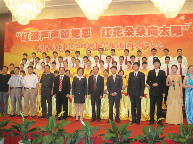 6月29日,由我院旅游系与无锡艾迪花园酒店、无锡天星酒店管理有限公司联合举办的“红歌声声颂党恩、红花多多向太阳”庆祝中国共产党建党90周年大型红歌会在无锡艾迪花园酒店举行,我院副院长瞿立新、天星酒店管理有限公司董事长刘天星、艾迪花园酒店总经理陈善军、旅游系主任周建、党总支副书记于丽华以及三个单位全体党员参加了活动。